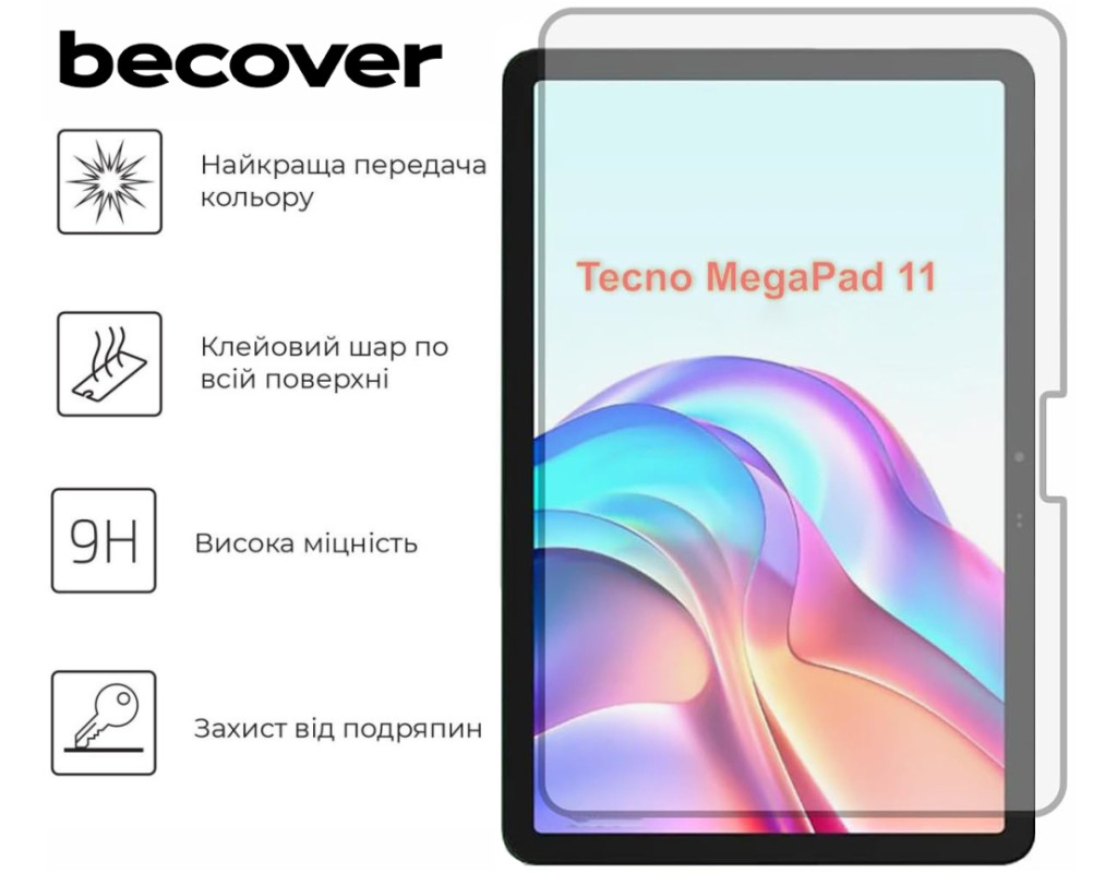 Призначення - для планшета, Вид покриття - глянсове, Сумісність з моделями - Tecno Megapad, Кількість в упаковці - 1 шт