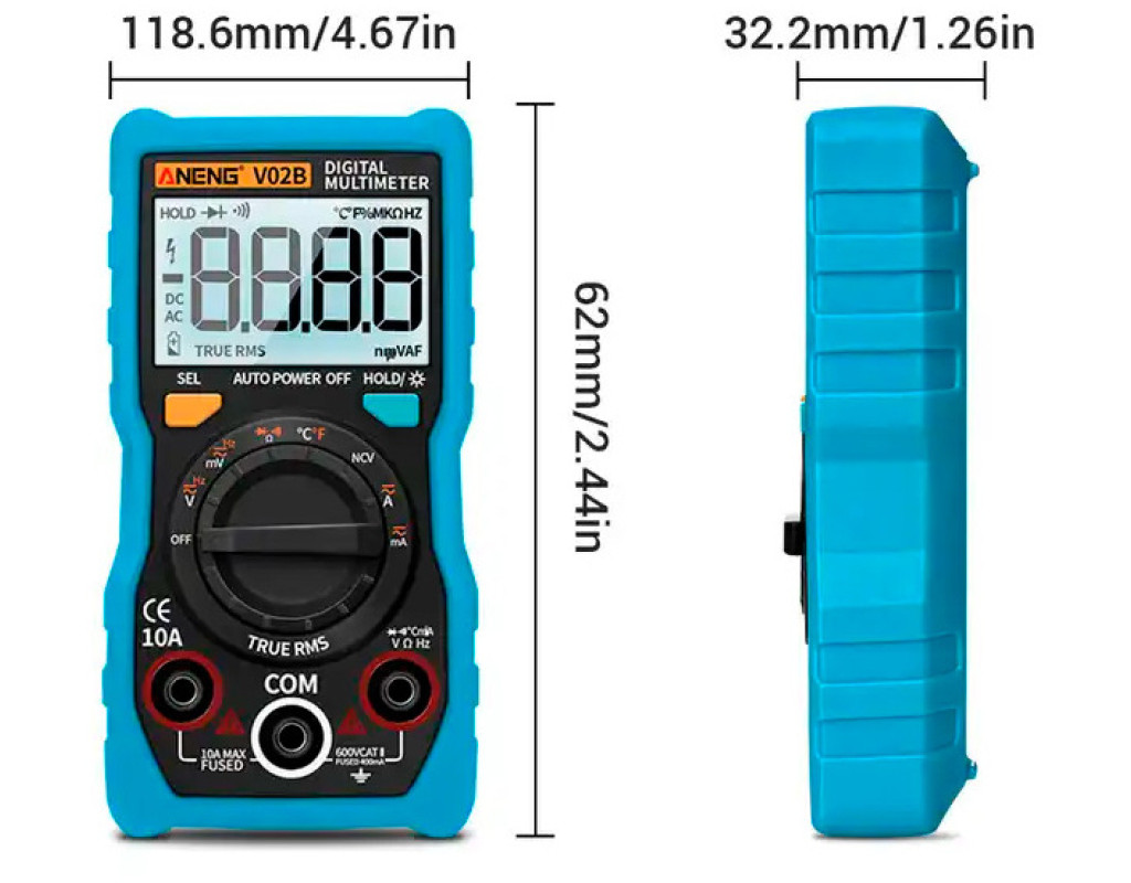 напруга (V), опір (R), прозвонка ланцюга, струм (А), тестування діодів, частота (F) |