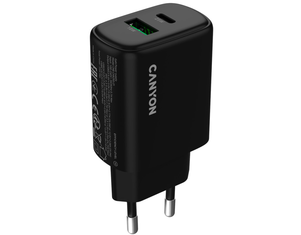 | Зарядний пристрій Canyon OnCharge 250 25W 1xPD 1xQC EU Black (CNE-CHA250-31) — це ваш надійний супутник у світі технологій, що уособлює якість та інновації у кожній деталі. Спеціально розроблений для різних гаджетів, він ідеально підходить для швидкої зарядки екшн-камер, геймпадів, TWS навушників, фітнес-браслетів, смарт-годинників та смартфонів. Цей адаптер живиться від мережі та здатний забезпечити максимальну вихідну потужність 25 Вт. Завдяки двом вихідним портам — USB Type-C та USB, зарядний пристрій забезпечує універсальність для різних типів підключень. Максимальний вихідний струм 3 А гарантує, що навіть найенергоємніші пристрої заряджатимуться без зайвих затримок. Справжньою родзинкою є підтримка технологій швидкої зарядки: Programmable PowerSupply (PPS), Quick Charge 3.0 та Power Delivery 3.0. Ці технології не лише прискорюють процес зарядки, а й ретельно регулюють потужність, забезпечуючи безпеку заряджуваних пристроїв. Це ідеальне рішення для тих, хто цінує свій час та піклується про довговічність гаджетів. Стильний чорний дизайн адаптера підкреслює його елегантність і практичність, роблячи його чудовим аксесуаром для дому, офісу або подорожей. Компактні розміри дозволяють легко взяти його з собою, де б ви не були. Canyon OnCharge 250 не просто зарядний пристрій, а важливий елемент вашого повсякденного життя, готовий задовольнити всі ваші вимоги до енергоспоживання та швидкості у сучасному світі. |