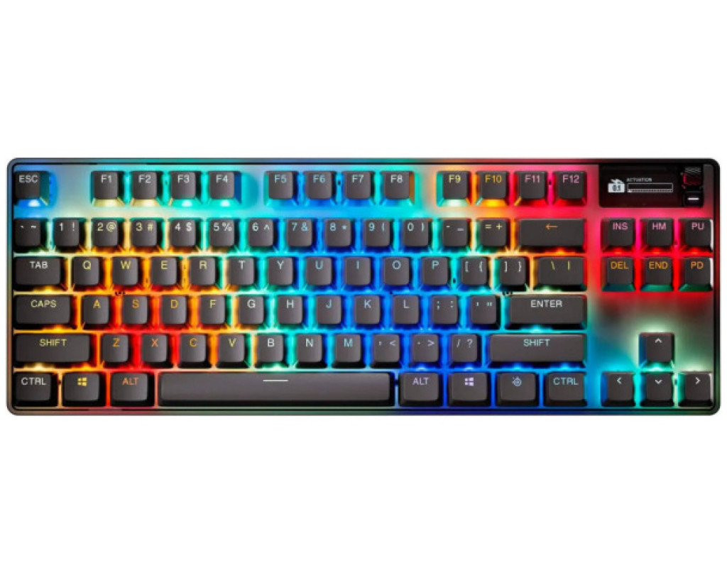 Швидша у 20 разів за традиційні механічні клавіатури, ігрова TKL клавіатура SteelSeries Apex Pro TKL WL миттєво перетворять усі натискання клавіш в ігрові дії. Виконана у формфакторі TKL, який обирають переможці Esports, вона надає збільшений простір для ігрових рухів. Запатентовані механічні перемикачі OmniPoint 2.0 дають можливість налаштовувати відстань спрацьовування кожної клавіші окремо. Вони підтримують 40 рівнів натискання кожної клавіші у діапазоні спрацьовування від 0.1 до 4.0 мм з точністю 0.1 мм та розраховані на 100 млн натискань. Налаштовуйте клавіші WASD на легке натискання для надшвидких рухів, а клавіші здібностей – на глибоке натискання для запобігання випадковому запуску спеціальних дій. Запрограмовуйте дві різні дії для однієї клавіші, наприклад, ходьбу при легкому натисканні та спринт при глибокому. Технологія Rapid Trigger динамічно активує та дезактивує клавіші на основі відстані, а не фіксованої точки в ході клавіші. Це усуває затримку, спричинену фізичним переміщенням перемикача. Спеціальні елементи керування мультимедіа - металевий ролик та мультимедійна клавіша, дозволяють легко регулювати гучність та здійснювати інші налаштування під час гри - змінювати яскравість, перемотувати назад, пропускати, призупиняти тощо одним натисканням кнопки. Клавіатура SteelSeries Apex Pro TKL WL також оснащена інтелектуальним OLED дисплеєм, який виконує функції командного центру. Він відображатиме важливі деталі та корисну інформацію для налаштування параметрів, зміни профілів і перегляду оновлень під час гри. Каркас з алюмінієвого сплаву робить SteelSeries Apex Pro TKL WL міцною та продовжує її експлуатаційний термін. Зручна знімна магнітна підставка для зап’ясть не дасть втомитись рукам під час тривалих ігрових сесій. Висувні гумові ніжки дозволяють обрати один із трьох доступних рівнів висоти. Програмне забезпечення SteelSeries Engine дозволить визначити функції окремих клавіш та встановити ручне керування підсвічуванням. Встановлюйте динамічне підсвічування для кожної клавіші - SteelSeries пропонує мільйони варіантів кольорів та ефектів. Синхронізуйте клавіатуру з іншим обладнанням SteelSeries та отримуйте незабутній ігровий досвід. Бездротова технологія передачі даних Quantum 2.0 Dual Wireless забезпечує стабільний зв’язок та роботу без затримок із підключенням 2.4 ГГц і Bluetooth 5.0. Клавіатура SteelSeries Apex Pro TKL WL також підтримує дротове підключення через знімний USB кабель, який входить у комплект постачання. |