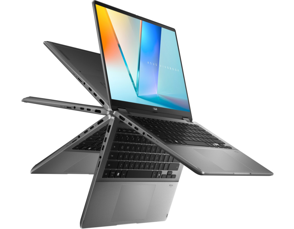 | Інтелектуальний, універсальнийГотові до прискорення? Зустрічайте універсальний ноутбук ASUS Vivobook 14 Flip зі штучним інтелектом. Він оснащений шарніром, який розкриває екран на повні 360° для максимальної свободи, і підтримує стилус ASUS Pen 2.0, що дає змогу легко й швидко адаптувати режим роботи пристрою під ваші потреби. Ноутбук працює на базі новітнього процесора Intel до моделі Core Ultra (Series 2) з NPU, що має продуктивність до 47 TOPS, а також оснащений приголомшливим 14-дюймовим сенсорним NanoEdge-екраном ASUS Lumina OLED з роздільною здатністю WUXGA. Завдяки тривалому часу автономної роботи – до 28 годин – він здатний працювати без заряджання протягом декількох робочих днів. Це найкращий ноутбук для студентів і користувачів, які часто працюють в мобільних умовах. Потужна та енергоефективна платформаУ максимальній конфігурації ноутбук оснащується процесором Intel Core Ultra з NPU продуктивністю 47 TOPS для прискорення обчислень у застосунках штучного інтелекту. Завдяки новим P- (Performance) та E-ядрам (Efficiency) забезпечується зниження енергоспоживання "системи на кристалі" до 40%. Завдяки TDP до 30 Вт, технології Intel AI Boost і пам'яті LPDDR5X-8533 він легко впорається з вимогливими завданнями в багатозадачному режимі. ASUS Copilot+ PC нового поколінняВін тут! Ми з гордістю представляємо ASUS Vivobook 14 Flip – новий ноутбук класу Copilot+ PC. Оснащений новітнім процесором із підтримкою штучного інтелекту, цей ноутбук пропонує новітні інтелектуальні функції, підвищену безпеку, швидкість і можливості для персоналізації. Інтегрований модуль для прискорення ШІ-обчислень, функція Copilot у Windows для персоналізованої допомоги та набір потужних ШІ-інструментів від ASUS роблять цей пристрій найкращим помічником. ASUS Copilot+ PC простіше, швидше й розумніше звичайних комп’ютерів. Ви можете скористатися всіма можливостями штучного інтелекту просто зараз. Відчуйте різницю! ASUS ШІ – завжди неймовірний!Програмне забезпечення ASUS зі штучним інтелектом допоможе полегшити виконання ваших повсякденних завдань. З легкістю впорядковуйте мультимедійні файли за допомогою функцій сортування на основі ШІ, захищайте конфіденційність за допомогою ШІ та насолоджуйтеся кришталево чистим звуком завдяки інтелектуальному шумозаглушенню. Відкрийте для себе майбутнє технологій разом з ASUS, де штучний інтелект покращує кожен аспект вашого життя. Акумулятор високої ємності з підтримкою швидкого заряджанняЗ ASUS Vivobook 14 Flip вам більше не доведеться турбуватися про рівень заряду акумулятора. Завдяки надійному акумулятору високої ємності – 70 Вт*год – ноутбук здатен працювати впродовж кількох робочих днів без заряджання. Крім того, завдяки технології швидкого заряджання його можна швидко підзарядити й повернутися до своїх справ без жодних перерв. Приголомшливий OLED-дисплейASUS Vivobook 14 Flip подарує неймовірні візуальні враження. Його 14-дюймовий дисплей ASUS Lumina OLED із роздільною здатністю WUXGA і частотою оновлення 60 Гц відтворює надзвичайно чітке й плавне зображення. Адаптивне звучанняУ співпраці з Dolby Atmos було створено аудіосистему, яка динамічно налаштовує параметри звуку в різних режимах, забезпечуючи стабільно якісний звук у будь-якої орієнтації пристрою. Швидкість Wi-Fi 7У ASUS Vivobook 14 Flip використовується бездротовий модуль стандарту Wi-Fi 7, який до 4.8 раза швидше попереднього Wi-Fi 6. Ноутбук автоматично вибирає маршрутизатор з найсильнішим сигналом і ма