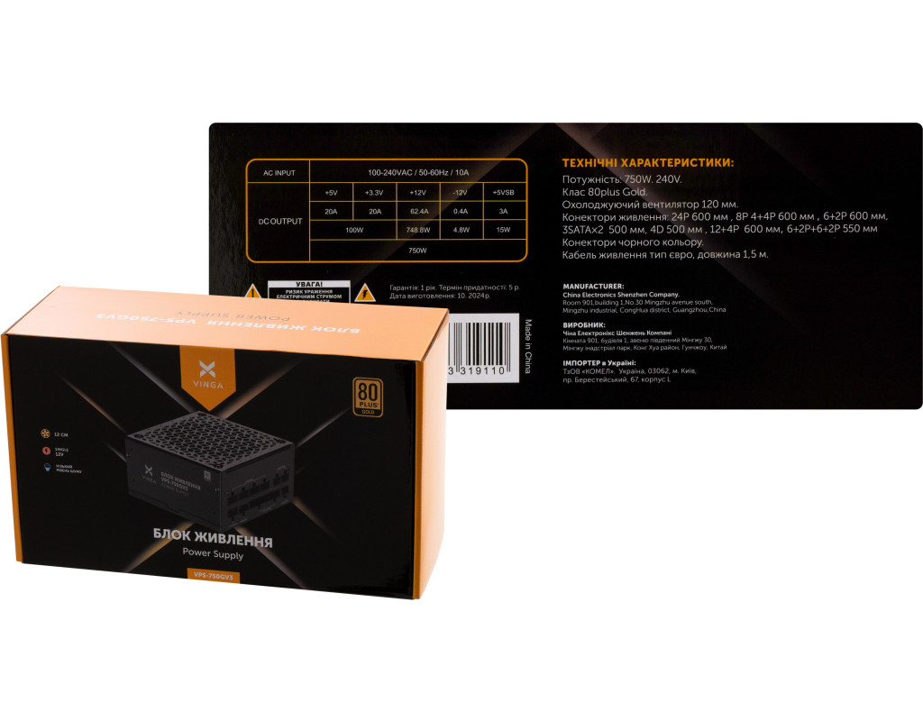 | Блок живлення Vinga 750W (VPS-750GV3) стає втіленням потужності та надійності для будь-якої комп'ютерної системи, привносячи новий рівень якості в світ енергопостачання. Завдяки своїм вражаючим характеристикам, цей блок живлення стає ідеальним вибором не лише для геймерів, але й для ентузіастів, які цінують стабільність і високу продуктивність. Завдяки потужності у 750 Вт, Vinga забезпечує безперебійну роботу навіть при максимальних навантаженнях. Це дозволяє виконувати інтенсивні завдання, не переживаючи за критичні збої, які можуть погіршити роботу системи. Модульне підключення кабелів у виконанні Full додає гнучкості та зручності, дозволяючи користувачам налаштовувати систему відповідно до своїх потреб без зайвих проводів. Однією з ключових переваг є сертифікація 80 PLUS Gold, яка забезпечує високу енергоефективність і суттєве зниження витрат на електроенергію. Активний модуль PFC додатково підвищує стабільність роботи всієї системи, сприяючи ефективнішому використанню енергії та підвищуючи загальну надійність ПК. Це робить цей блок живлення надійним вибором для тривалих ігрових сесій або інтенсивних завдань, які вимагають високої продуктивності. Стандарт ATX 3.0 гарантує сумісність з більшістю сучасних корпусів, а підключення материнської плати 24-pin та процесора 4+4pin забезпечують легку інтеграцію в системний блок. Чотири роз'єми додаткового живлення для відеокарт також забезпечують підключення найсучасніших графічних процесорів, а різноманіття роз'ємів, включаючи три 6+2 pin та один 16 pin, розширює можливості користувача для створення потужної геймерської системи. Охолодження — ще одна важлива характеристика. Блок живлення оснащений вентилятором діаметром 140 мм, який ефективно відводить тепло і знижує рівень шуму навіть під сильними навантаженнями. Завдяки компактним розмірам всього 150 x 150 x 86 мм, цей блок живлення ідеально підходить для різних конфігурацій ПК, надаючи більше місця для інших компонентів. Шість роз'ємів SATA дозволяють підключати велику кількість накопичувачів, що особливо актуально для користувачів, які працюють з великим обсягом даних. Додатковий роз'єм Peripheral забезпечує підключення старих або спеціалізованих пристроїв, роблячи Vinga 750W універсальним вибором для будь-яких конфігурацій ПК. Обираючи Vinga 750W (VPS-750GV3), ви отримуєте енергопостачання, яке відповідає найвищим стандартам. Це рішення, яке гарантує не лише стабільність роботи вашого ПК, але й відкриває нові горизонти продуктивності та ігор. Тож, вперед до нового рівня комп'ютерних можливостей — з Vinga все стане можливим. |