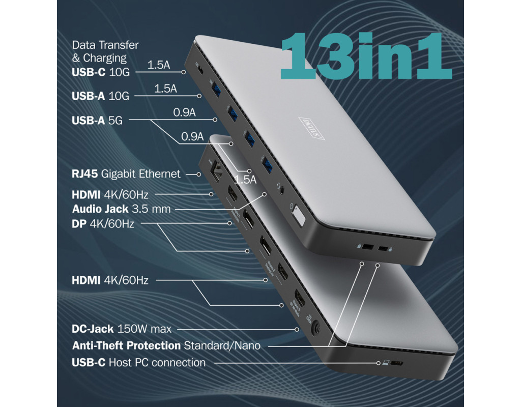 Порт-реплікатор Digitus USB-C > 3xHDMI/2xDP/4xUSB-A/USB-C/RJ54/DC/Audio (DA-70918)