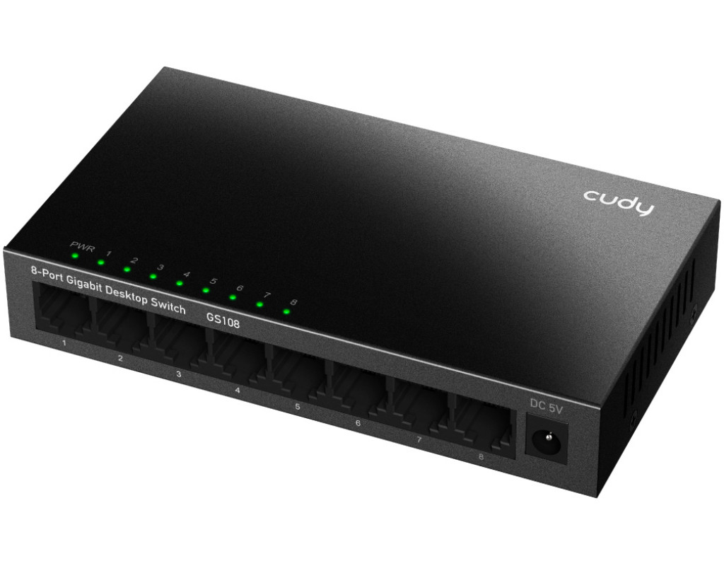 | Комутатор Cudy GS108 забезпечує високу продуктивність при низькому енергоспоживанні. Він підтримує передачу даних на відстані до 170 м, тому чудово підходить для використання приміщеннях великого розміру.