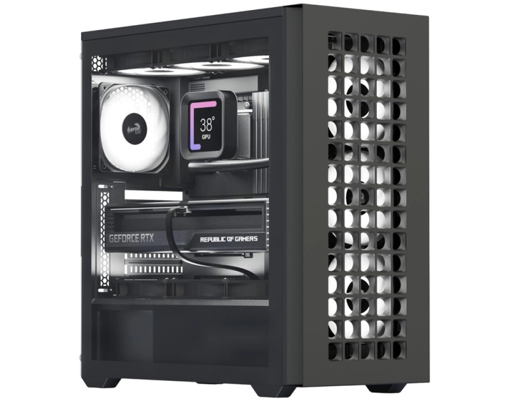 Корпус AeroCool D502A має стильний дизайн сітчастої передньої панелі, що робить його привабливим вибором для модного складання ПК у стилі mid-tower. Він підтримує рідинні кулери діаметром до 360 мм та має 11 слотів для вентиляторів, забезпечуючи чудовий потенціал охолодження. Завдяки міцному матеріалу корпусу SPCC, магнітним пиловим фільтрам та сумісності з материнськими платами ATX, Micro ATX та mini-ITX, D502A забезпечує надійну конструкцію, простоту обслуговування та універсальні можливості зберігання.