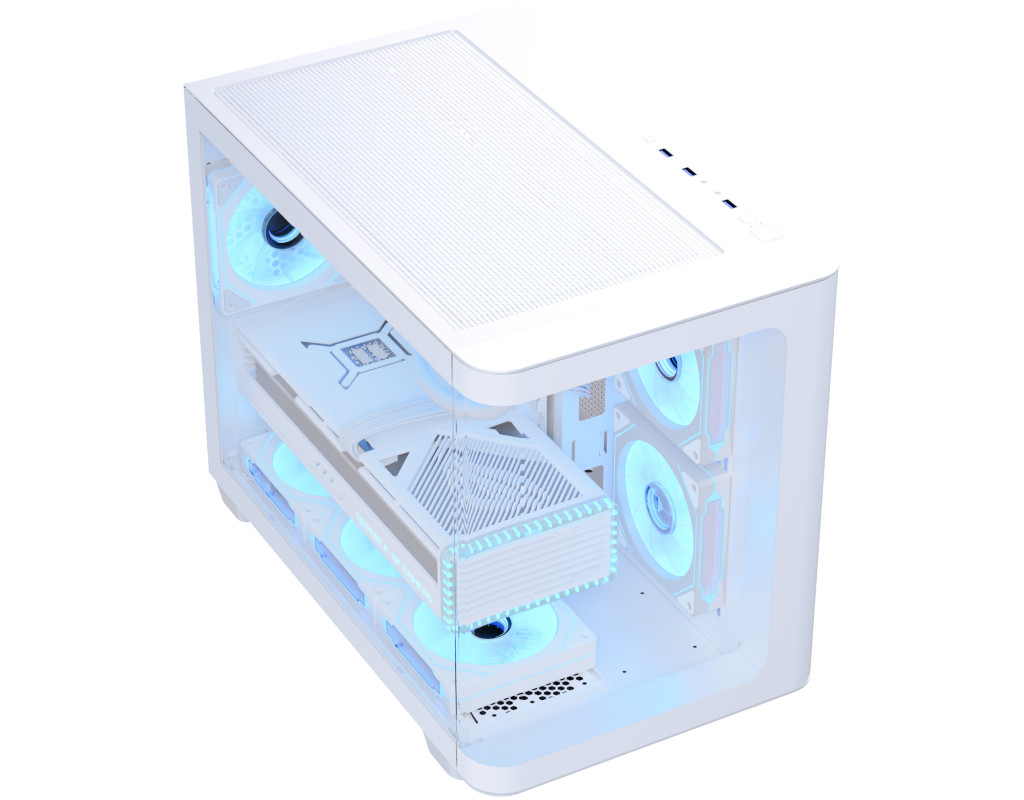 | AeroCool P300C — це компактний корпус для ПК із передньою та бічними панелями із повністю загартованого скла для приголомшливого перегляду інтер’єру, доповненого трьома попередньо встановленими вентиляторами ARGB (включаючи два із зворотними лопатями) з унікальним ефектом нескінченного дзеркала «міраж».