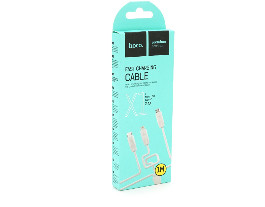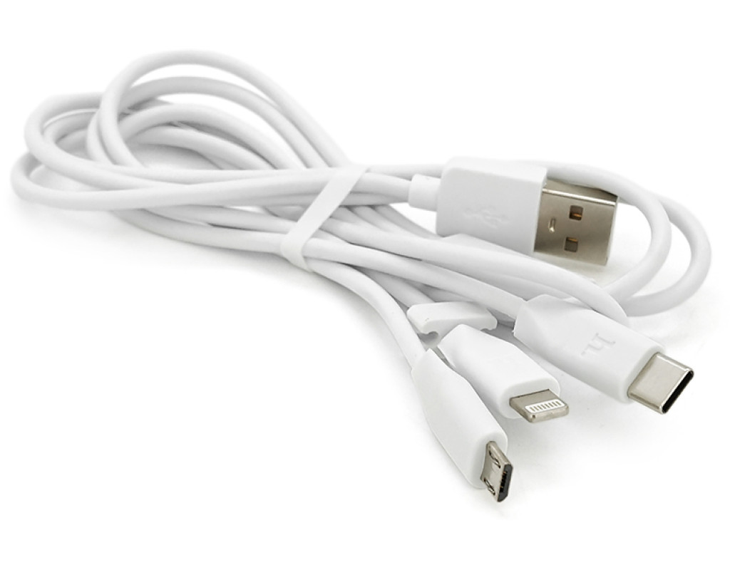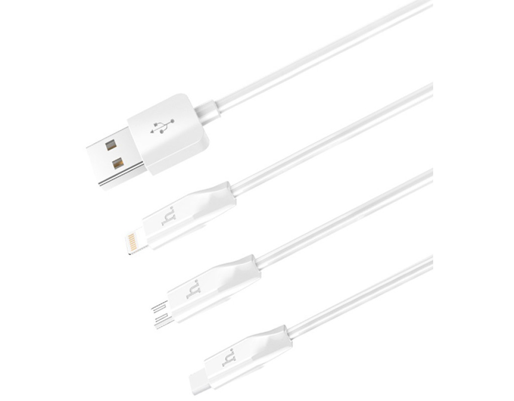 Кабель HOCO X1 USB-1 3 in 1 Micro / Iphone / Type-C, 2A, довжина 1м, White, Box
