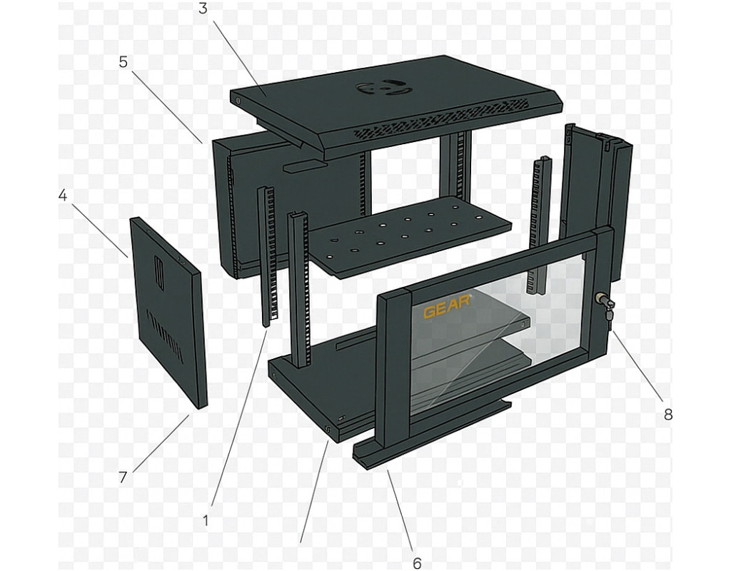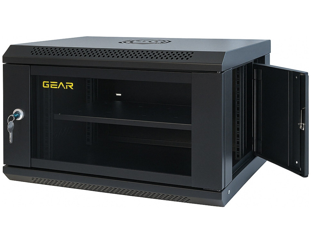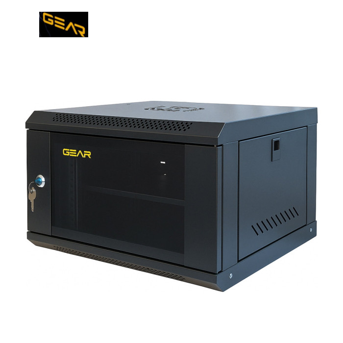 Новий продукт у лінійці ТМ GEAR - Шафа серверна (комунікаційна) настінна. Шафа має товщину металу ~1.2 мм, загартоване скло із замком. Бічні стінки на засувках, що забезпечує швидкий доступ до пристроїв, місце під кулер (120х120 мм). Товар постачається з полицею 1U 19"" і 4 напрямними для встановлення на довільній глибині. Комплектація: