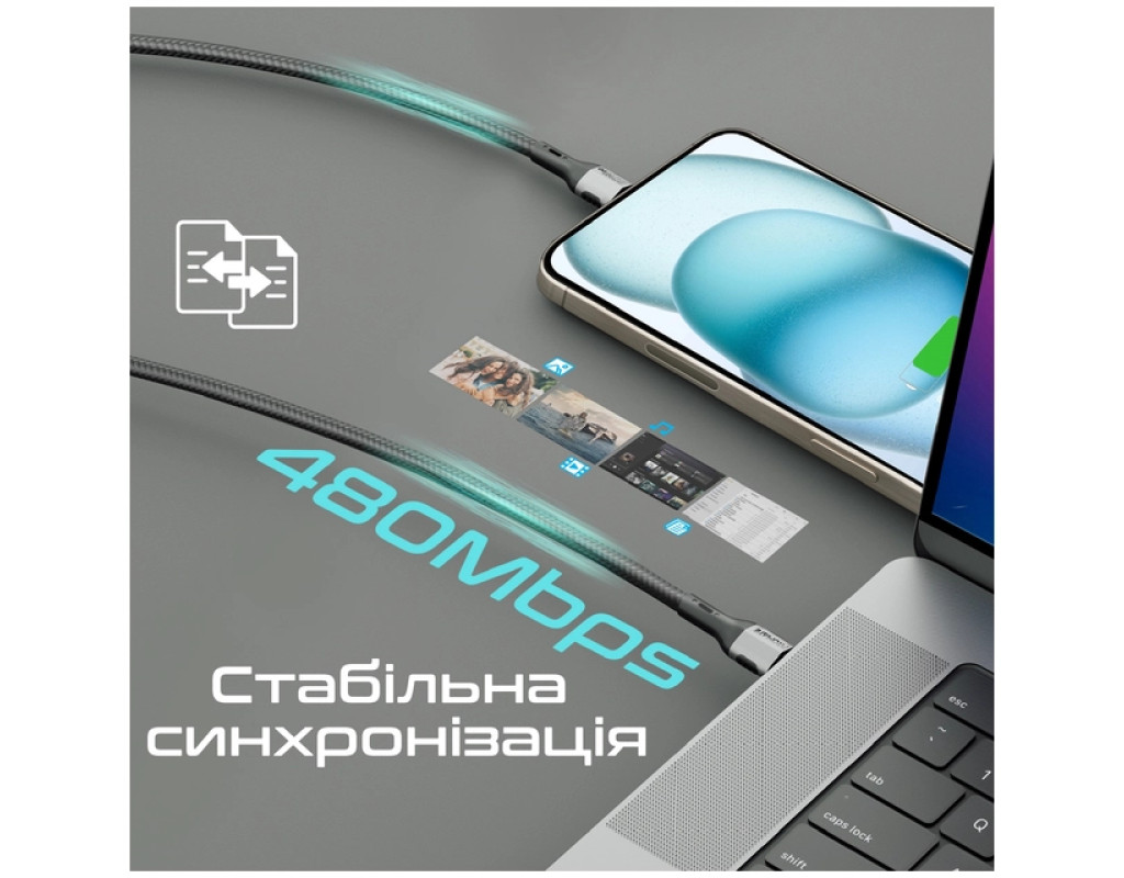 Тип - кабель, Тип конектора 1 - USB Type-C, Тип конектора 2 - USB Type-C, довжина - 1.2 м, 60 W, Колір - чорний