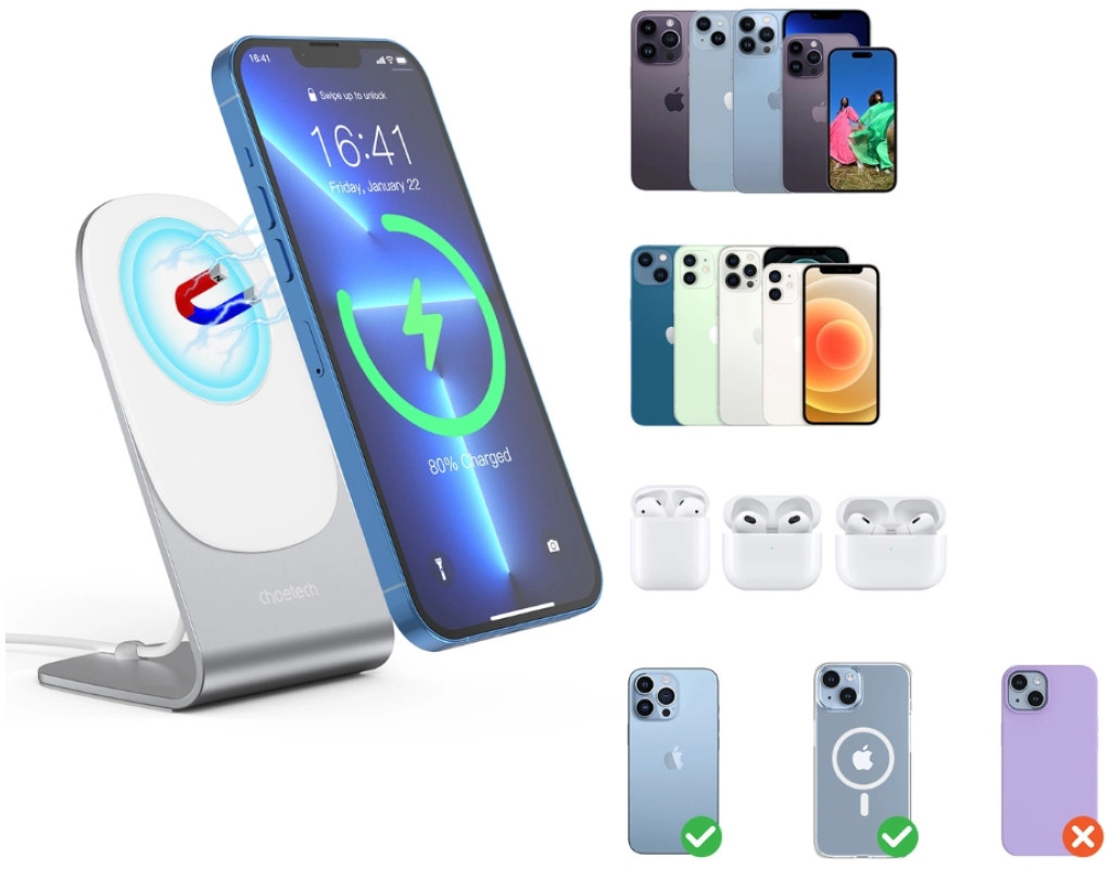 | Ви шукаєте гарний зарядний пристрій, який легко та швидко зарядить ваш телефон без проводів? Бренд CHOETECH представляє бездротовий зарядний пристрій із вбудованим магнітом. Воно повністю сумісне зі стандартом MagSafe, тому забезпечує їх швидку та стабільну зарядку.