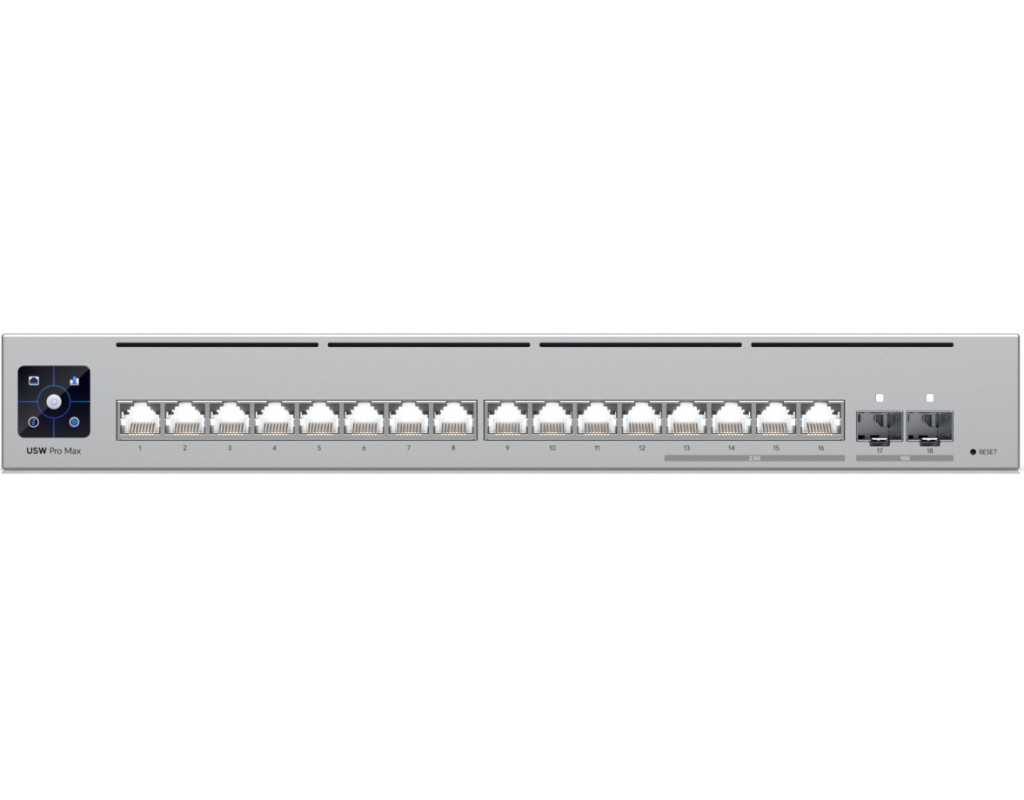 Ubiquiti UniFi Pro Max 16 — керований комутатор нового покоління, створений для корпоративних і креативних мереж, де важливі висока продуктивність, стабільність і зручність експлуатації. Пристрій поєднує потужне залізо, інтелектуальні функції і стильний дизайн, забезпечуючи оптимальний баланс між швидкістю, надійністю і простотою управління. Комутатор оснащений 12 портами 1 GbE, 4 портами 2.5 GbE і 2 портами 10 GbE SFP+, що забезпечує гнучкість підключення і підтримку швидкісних uplink-ліній. Загальна комутаційна здатність досягає 84 Гбіт/с, а неблокуюча пропускна здатність — 42 Гбіт/с. Завдяки підтримці функцій L2/L3-рівня — статичної маршрутизації, DHCP-сервера, QoS, ACL і IGMP-управління — UniFi Pro Max 16 здатний виконувати роль центру мережі в інфраструктурі будь-якого масштабу. Ключовою особливістю моделі є технологія Etherlighting™ — інтелектуальне підсвічування портів, що візуалізує швидкість з'єднання, активність, VLAN і статус лінків. Це спрощує діагностику, прискорює обслуговування і надає пристрою сучасний зовнішній вигляд. Комутатор може встановлюватися в стійку (1U), на стіну або на робочу поверхню, а продумана система охолодження забезпечує практично безшумну роботу. Управління здійснюється через платформу UniFi Network, де можна централізовано налаштовувати, оновлювати і контролювати всі пристрої екосистеми UniFi. Завдяки глибоким можливостям інтеграції, UniFi Pro Max 16 легко масштабується і адаптується до зростаючих потреб бізнесу. Це універсальне рішення, що поєднує продуктивність, функціональність і фірмовий мінімалізм Ubiquiti — ідеальний вибір для сучасних офісів, студій і коворкінгів. |