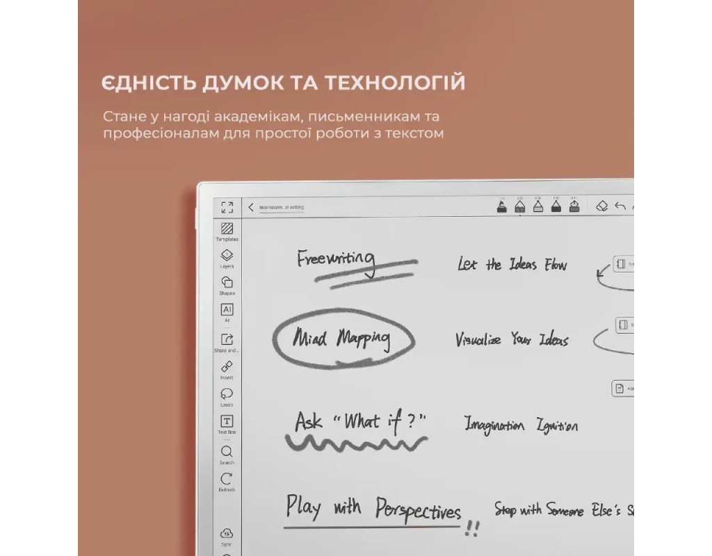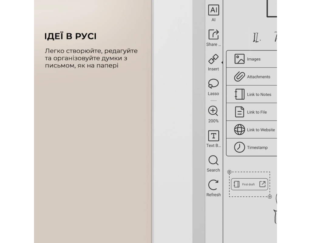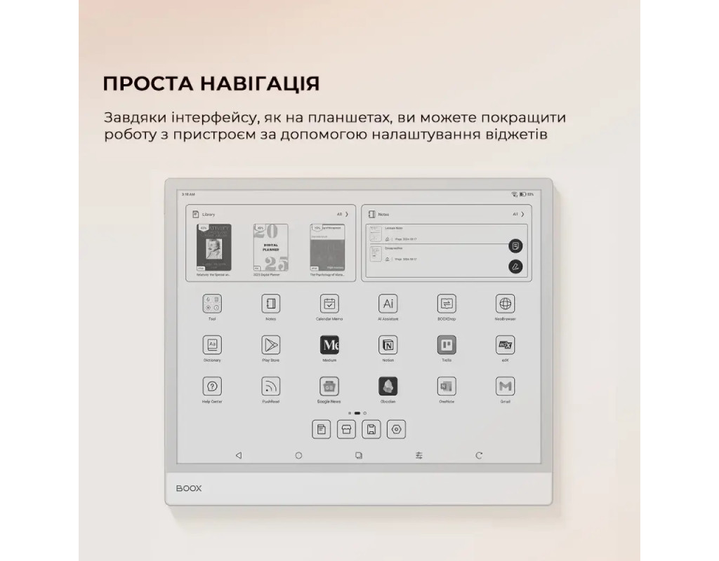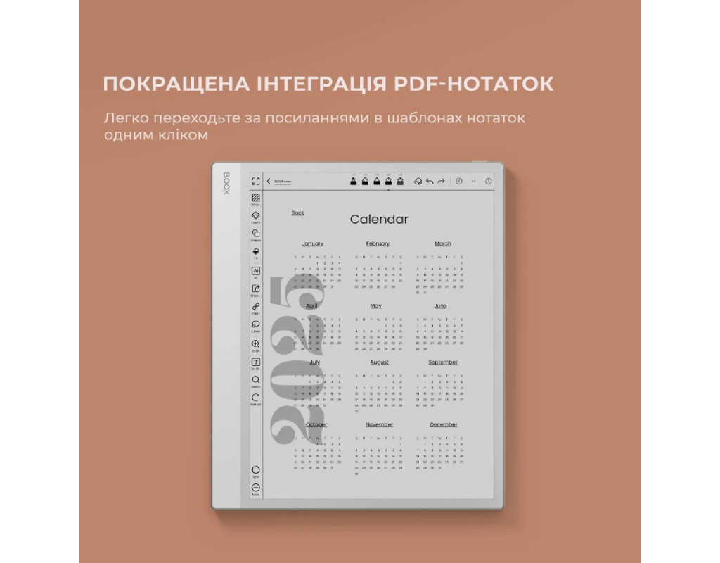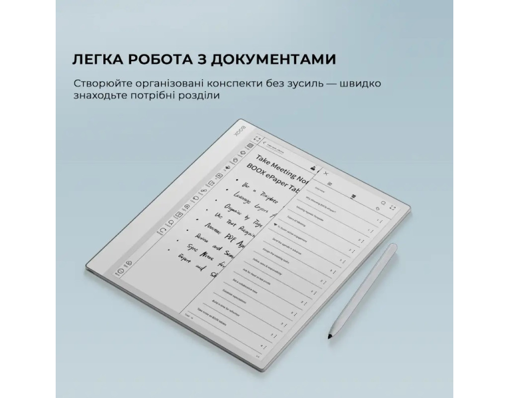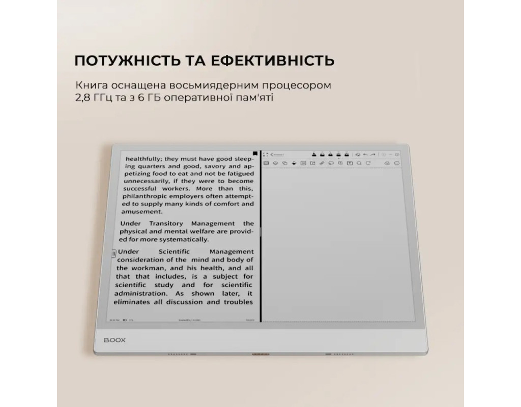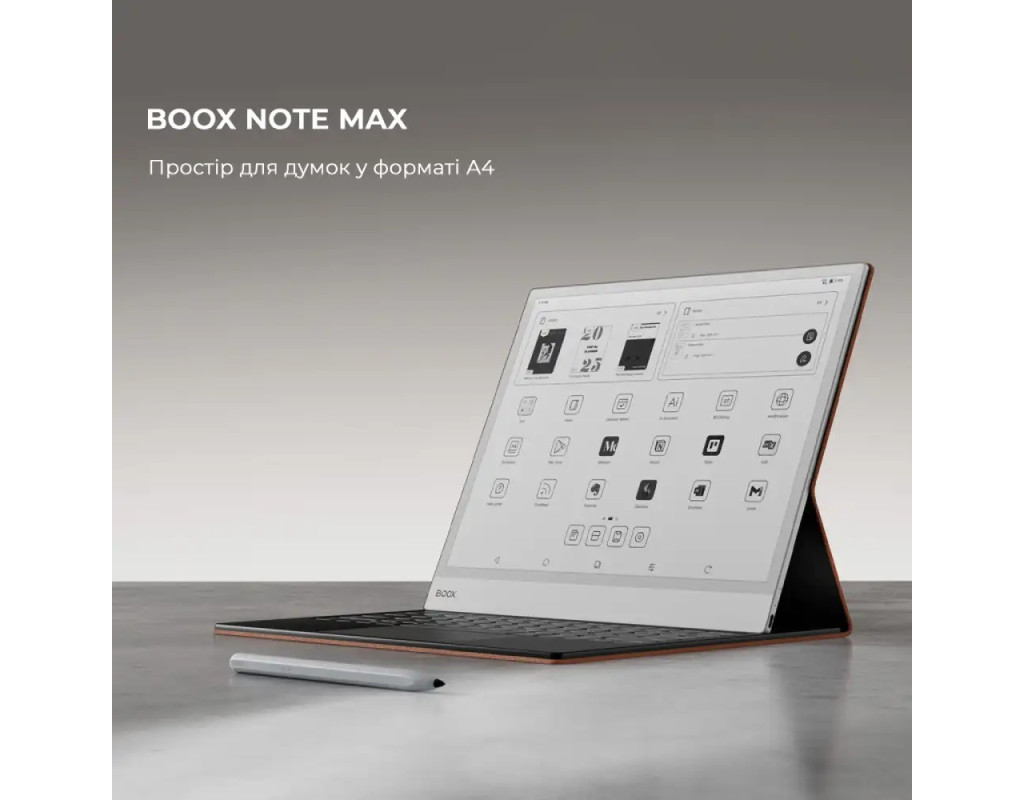 | Рідер Note Max формату A4, створений для розгорнутого мислення та ясності. Призначений для науковців, письменників і професіоналів, щоб вони могли з легкістю читати, проводити мозковий штурм і впорядковувати.