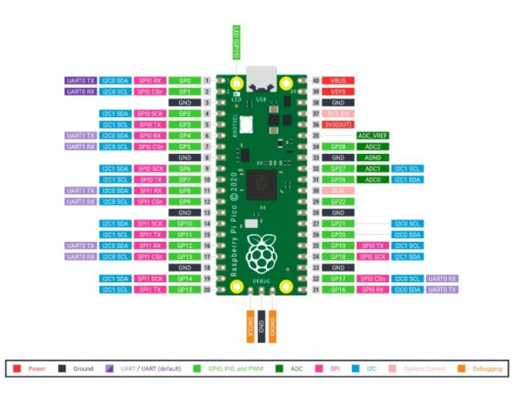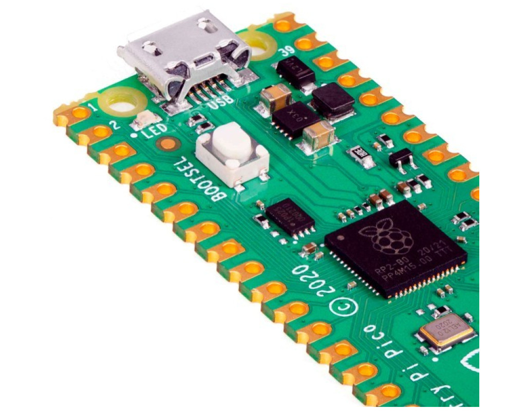 Микроконтроллер Raspberry Pi Pico - це високопродуктивна та низькобюджетна плата мікроконтролера від Raspberry Pi на основі чіпа RP2040. Особливості: - Чіп мікроконтролера RP2040, розроблений Raspberry Pi у Великобританії