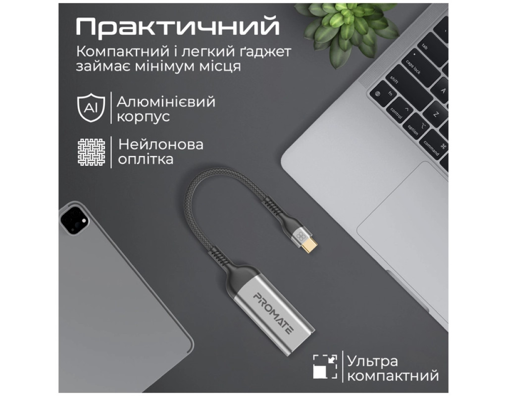 Адаптер USB-C to HDMI M 2.0m Promate (medialink-8k.grey)