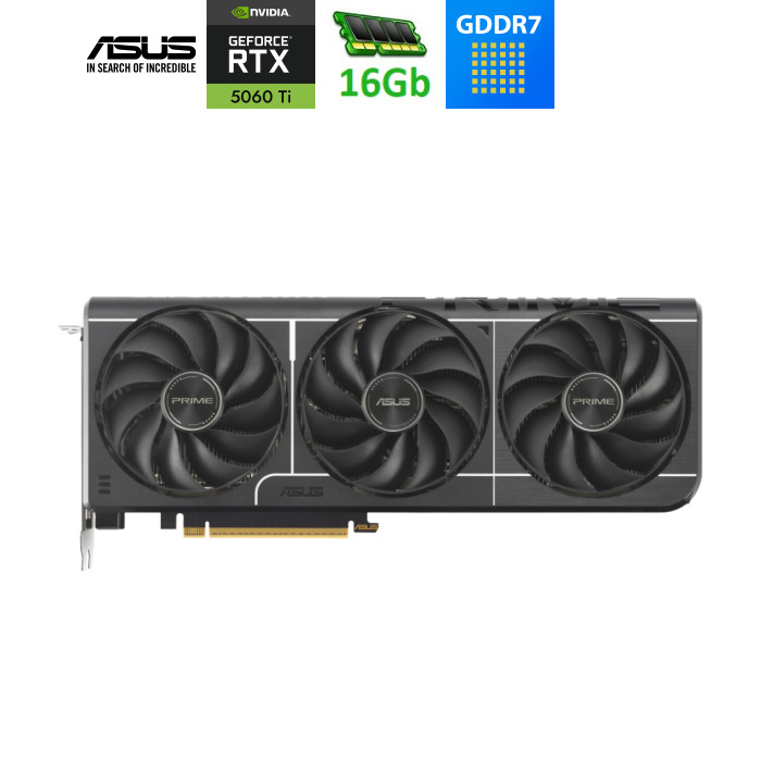 Готова до потужності Відчуйте первозданну продуктивність з Prime GeForce RTX 5060 Ti – відеокартою рівня ентузіастів, сумісною з компактними корпусами (SFF), з конструкцією шириною 2.5 слота та потрійною системою охолодження, що забезпечує потужний повітряний потік та чудове охлачення.