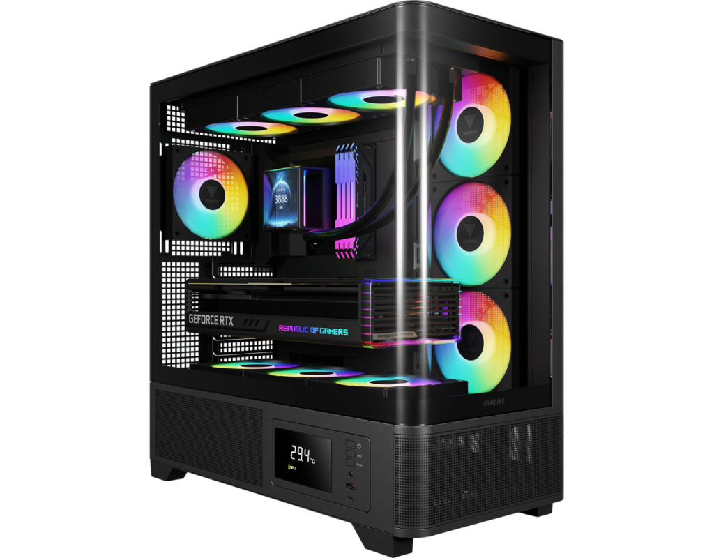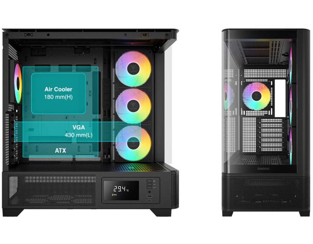 | Корпус для ПК Gamdias ATLAS P2 CG (4711514501025) — це втілення сучасного дизайну та передових технологій, створене спеціально для геймерів та ентузіастів. Елегантний геймерський корпус комбінує стиль та функціональність, пропонуючи безмежні можливості для вдосконалення вашого комп'ютера. Одна з найпомітніших характеристик цього корпусу – його панорамний огляд інтер'єру. Завдяки вигнутій скляній конструкції, ви можете милуватися внутрішніми компонентами під кутом 270 градусів. Це не тільки додає естетики, але й полегшує доступ до компонентів. Прозорі передня та бічна панелі ефектно контрастують з чорним забарвленням корпусу, підкреслюючи його стильний вигляд. Gamdias ATLAS P2 CG підтримує всі популярні формати материнських плат, включаючи Micro-ATX, Mini-ITX та ATX. Інноваційна підтримка плат BTF сприяє охайності всередині системи, дозволяючи приховувати кабелі, що значно полегшує процес складання та покращує вентиляцію. Вентиляційна система корпуса заслуговує окремої уваги. Оснащений чотирма потужними 120 мм ARGB-вентиляторами з PWM, він забезпечує оптимальне охолодження всіх компонентів. Вбудований концентратор вентиляторів на 8 портів дозволяє точно контролювати повітряний потік та підсвічування без додаткового шуму. Додаткові місця для вентиляторів, як на верхній, так і на нижній панелях, дозволяють встановити до десяти вентиляторів, забезпечуючи ідеальну циркуляцію повітря. Підтримка рідинного охолодження є ще однією важливою перевагою. Можливість встановлення радіаторів на бічній, верхній, задній та нижній панелях дозволяє досягти максимального охолодження для навіть найпотужніших збірок. Ви можете розміщувати радіатори до 360 мм на верхній панелі, забезпечуючи стабільну роботу системи з будь-якими завданнями. Унікальний LCD екран на панелі управління дозволяє в режимі реального часу відстежувати стан компонентів вашого комп’ютера за допомогою програмного забезпечення ZEUS CAST. Це надає можливість перемикати режими відображення та контролювати температуру процесора і графічної карти. З оновленими портами USB Type C та USB 3.0 швидкість передачі даних досягає нових висот, а вбудований аудіороз'єм гарантує зручність використання. Внутрішнє планування корпусу передбачає 2 відсіки по 3.5" та 2 відсіки по 2.5", включаючи знімний кошик для HDD, який можна адаптувати під ваші конкретні потреби. Пилові фільтри на верхній та нижній панелях захищають внутрішні компоненти від небажаного пилу, забезпечуючи довгий термін служби всього обладнання без частого очищення. Розмір корпусу складає 238 х 500 х 475 мм і важить 9.55 кг, що робить його ідеальним рішенням для тих, хто полює за високоякісним просторовим рішенням. Корпус Gamdias ATLAS P2 CG поєднує в собі розкішний дизайн з передовими технологіями і є відмінним вибором для створення надійної, продуктивної та стильної комп'ютерної збірки. Завдяки своєму бездоганному виконанню та увазі до деталей, він стане серцем будь-якого геймерського сетапу, вигідно виділяючись серед інших. |