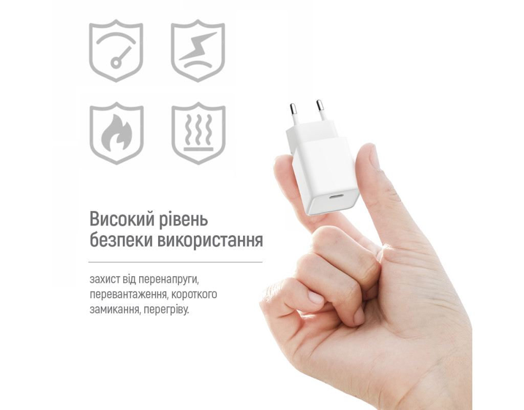 Особливості GaN технологія - забезпечує високу ефективність, швидку зарядку з мінімальним тепловиділенням та підвищену надійність. Підтримка протоколів швидкої зарядки PD 2.0 & 3.0 PPS 20W, Apple fast charge, Huawei FCP, Quick Charge 2.0/3.0/4.0+, Samsung SFC/AFC. Інтелектуальна мікросхема USB Auto ID, визначає тип підключеного пристрою, регулює напругу і силу струму, що забезпечує швидку зарядку та високу сумісність з пристроями більшості брендів. Висока якість та надійність . Компактні розміри. Легкість в експлуатації. Високий рівень безпеки використання - захист від перенапруги, перевантаження, короткого замикання, перегріву. Робота в мережах від 100 до 240 Вольт. |