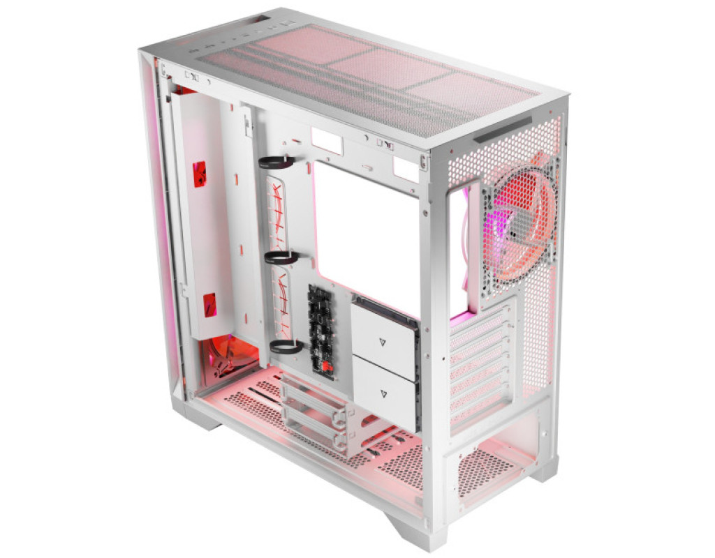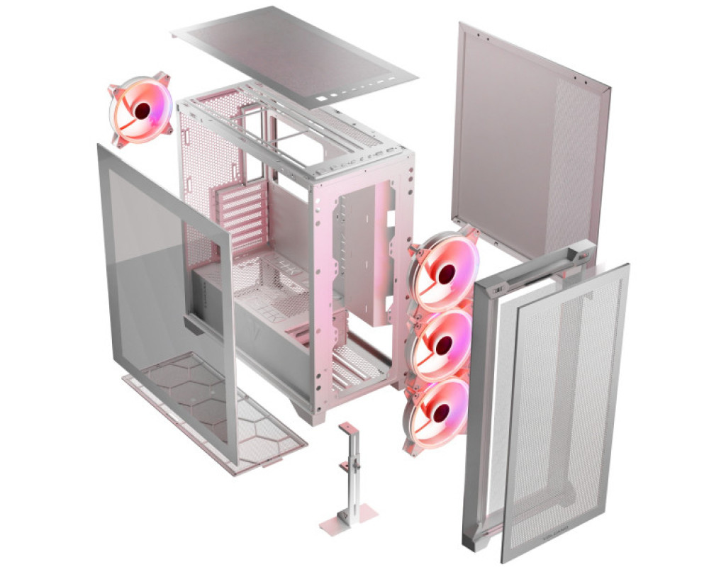 | Корпус для ПК Modecom VOLCANO EXPANSE S ARGB (AT-EXPANSE-SG-20-000000) - це інноваційне рішення для тих, хто цінує ідеальний баланс між стилем, функціональністю та можливостями налаштування. Завдяки своєму елегантному дизайну з підкресленими мінімалістичними лініями, цей корпус привносить сучасну атмосферу в будь-яке робоче чи ігрове середовище. Клас мультимедійного корпусу поєднує типорозмір Miditower, що надає компактність, та водночас забезпечує можливість для гнучкої конфігурації системи. Modecom VOLCANO EXPANSE S ARGB підтримує різноманітні формати матерінських плат, включаючи Micro-ATX, Mini-ITX та ATX, дозволяючи вам обирати найкращу конфігурацію для своїх потреб. Унікальною особливістю цього корпусу є нижнє розташування блоку живлення, яке сприяє покращеній вентиляції та забезпечує організований внутрішній простір. Відсутність комплектного блоку живлення надає свободу вибору, щоб оптимально задовольнити ваші технічні запити. Внутрішній простір корпусу розроблено з урахуванням максимального зручності. Три відсіки для 3.5-дюймових жорстких дисків та три відсіки для 2.5-дюймових носіїв пропонують величезні можливості для організації зберігання даних. Завдяки семи слотам розширення, ви зможете додати нові графічні чи мережеві адаптери для покращення продуктивності комп'ютера. Modecom VOLCANO EXPANSE S ARGB розрахований на установлення довгих відеокарт довжиною до 380 мм, що дозволяє використовувати найсучасніші графічні рішення без обмежень. Максимальна висота процесорного кулера до 170 мм забезпечує широкий вибір охолоджувальних рішень. Високоефективна система охолодження складається з трьох вентиляторів розміром 120 мм, які створюють потужний потік повітря, забезпечуючи оптимальне теплорозподілення. Додаткова підтримка рідинного охолодження допомагає підтримувати стабільність і високу продуктивність навіть при інтенсивних навантаженнях. На передній панелі корпусу розташовані зручні зовнішні роз'єми: один USB 3.0, два USB 2.0 та два аудіороз'єми, що значно спрощує підключення периферії та надає швидкий доступ до всіх необхідних функцій. З розмірами 200 х 450 х 470 мм і вагою 5.6 кг, цей чорний корпус стає практичним і зручним для транспортування, гармонійно вписуючись у будь-яке оточення. Modecom VOLCANO EXPANSE S ARGB - це не просто корпус, а ретельно продумане рішення, яке об'єднує у собі якість, інновації та унікальність. Він створений для того, щоб задовольнити найвибагливіших користувачів, які прагнуть поєднання стилю та передових технологій у своєму ідеальному ПК. |