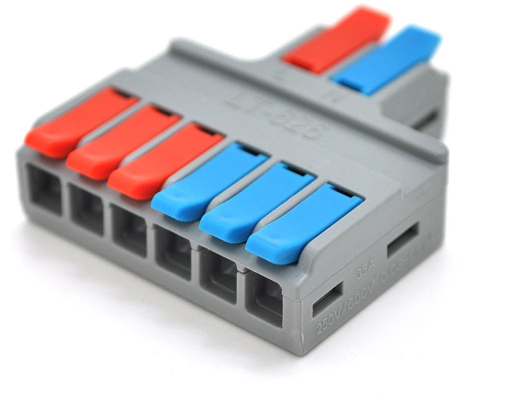 Клемна колодка з натискними затискачами 2х6-проводу LT-626 для розподільчих коробок, 450V / 32A, сера, упаковка 5 шт, ціна за упаковку