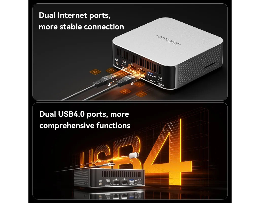 GEEKOM A8 Mini PC – це компактний настільний комп'ютер з процесором AMD Ryzen 7 та найкращою для міні ПК графікою Radeon 780M, 32 ГБ оперативної пам'яті DDR5 та SSD на 1 ТБ з фокусуванням на штучному інтелекті. Флагманський міні ПК A8 від GEEKOM оснащений процесором AMD Ryzen останнього покоління з 8 ядрами, 16 потоками, 16 МБ кеш-пам'яті та тактовою частотою до 5.1 ГГц. Цей міні ПК — це найкраще рішення, коли справа стосується як продуктивності в іграх, так і ефективності робочих завдань. Придбавши цей міні ПК, ви отримуєте графіку AMD Radeon 780M з підтримкою до чотирьох моніторів і роздільною здатністю до 8K. Він має достатню потужність для всього: від перегляду веб-сторінок та потокової передачі фільмів до редагування аудіо та відео, справляється з іграми при не мінімальних налаштуваннях графіки. Якщо ви шукаєте потужний ПК, але не хочете, щоб величезний корпус займав багато місця, міні ПК GEEKOM A8 — це ідеальний варіант. |