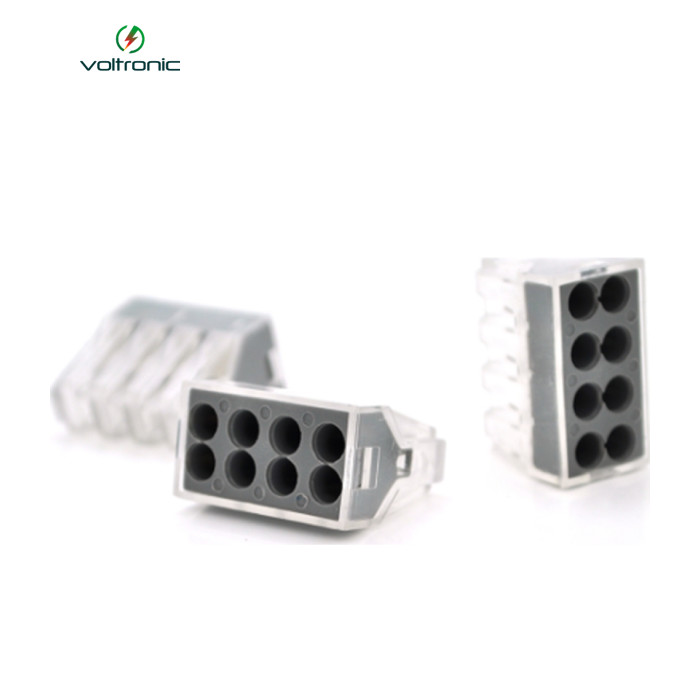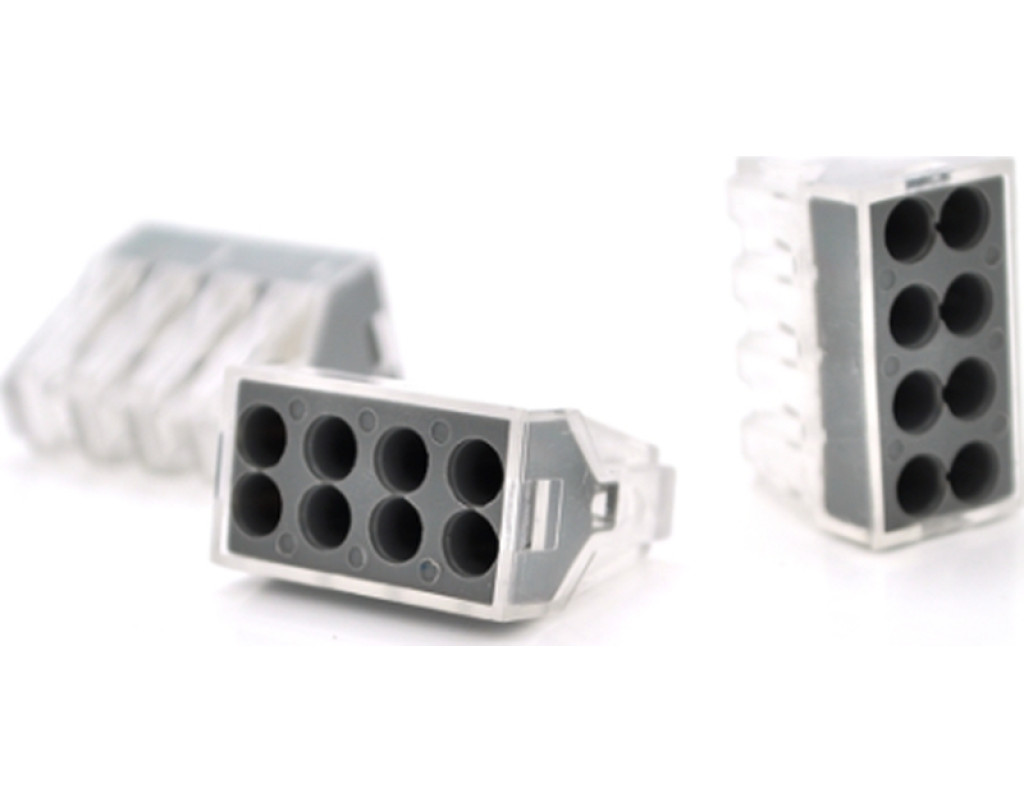 WAGO 773-108 — 8-контактна клема Push-Wire для з’єднання одножильних провідників перерізом 0,75–2,5 мм². Розрахована на струм до 24 А і напругу до 450 В, забезпечує швидкий та надійний монтаж без інструментів. |