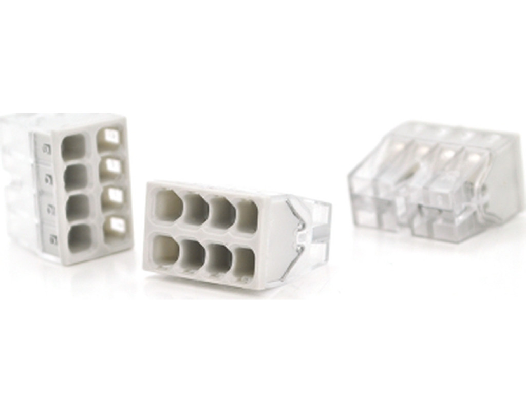 WAGO 773-208 — 8-контактна клема Push-Wire для з’єднання одножильних провідників перерізом 0,75–2,5 мм². Розрахована на струм до 24 А і напругу до 450 В, забезпечує швидкий та надійний монтаж без інструментів. |