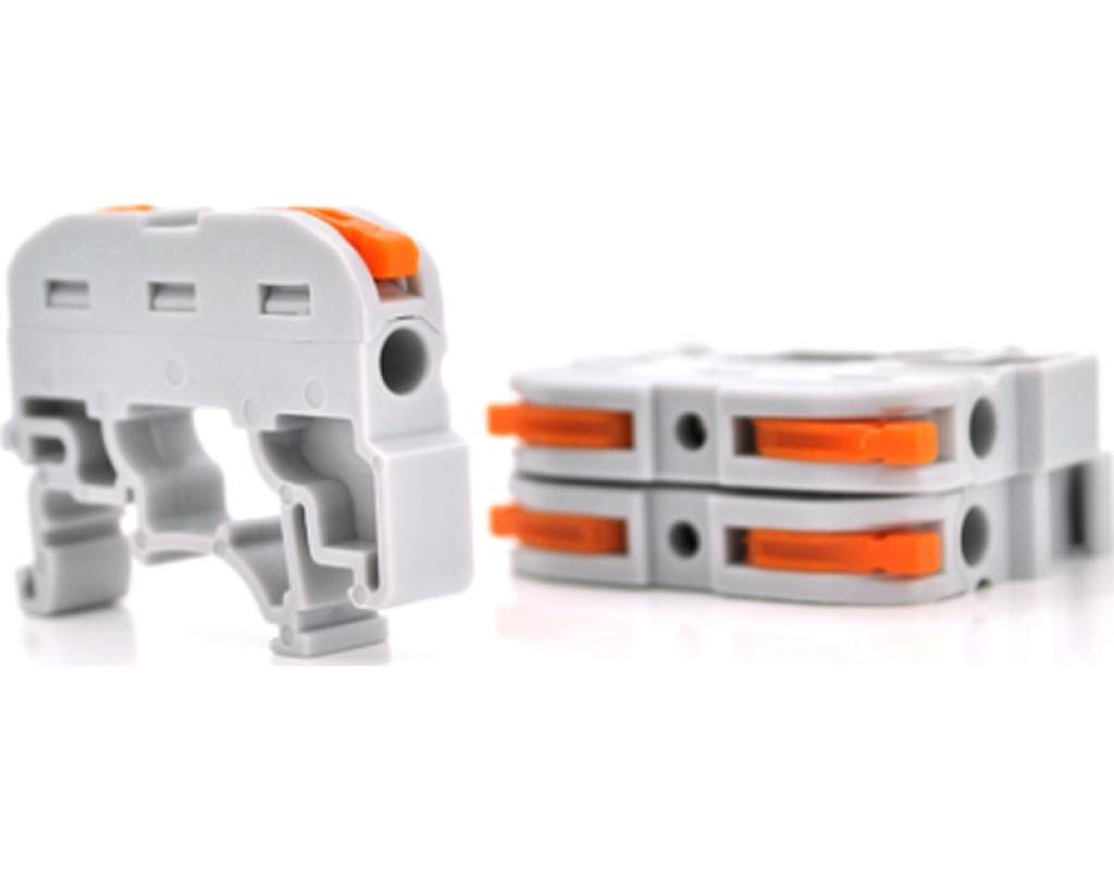 Клема з натискними затискачами 1-провідна WAGO K121 на DIN - рейку, 1-pin, сіра Неможливо уявити електромонтажні роботи без необхідності з'єднання проводів. Раніше для цього використовувалося скручування в кращому випадку доповнене паянням отриманого контакту. Цей спосіб, який найчастіше застосовується і сьогодні, вимагає витрат часу та певної навички. Та й саме з'єднання виходить неакуратним і громіздким. Безгвинтові самозатискні клеми WAGO використовуються для швидкого, безпечного та надійного з'єднання мідних провідників. Механізм клем WAGO будується на основі технології пружинного затиску, яка завоювала визнання у всьому світі у сфері з'єднання електричних провідників. Переваги: