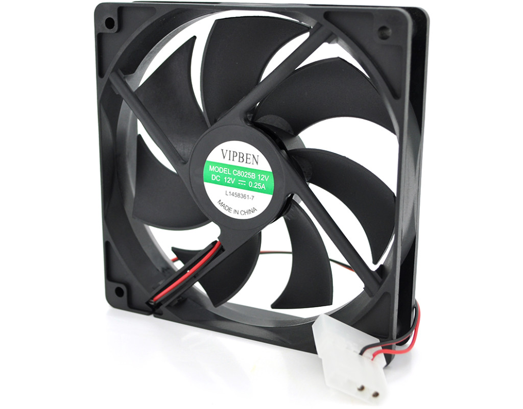 | Кулер корпусний Vipben C8025B, 120x120x25mm, 12V / 0.25A, RPM 1100±10%, 2-pin MOLEX, Black, OEM |