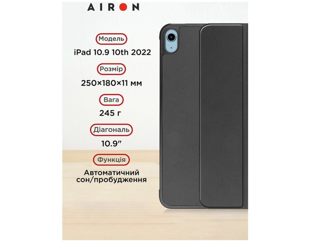 Чохол до планшета AirOn Premium iPad 10.9 10th 2022 + film Black (4822352781146)