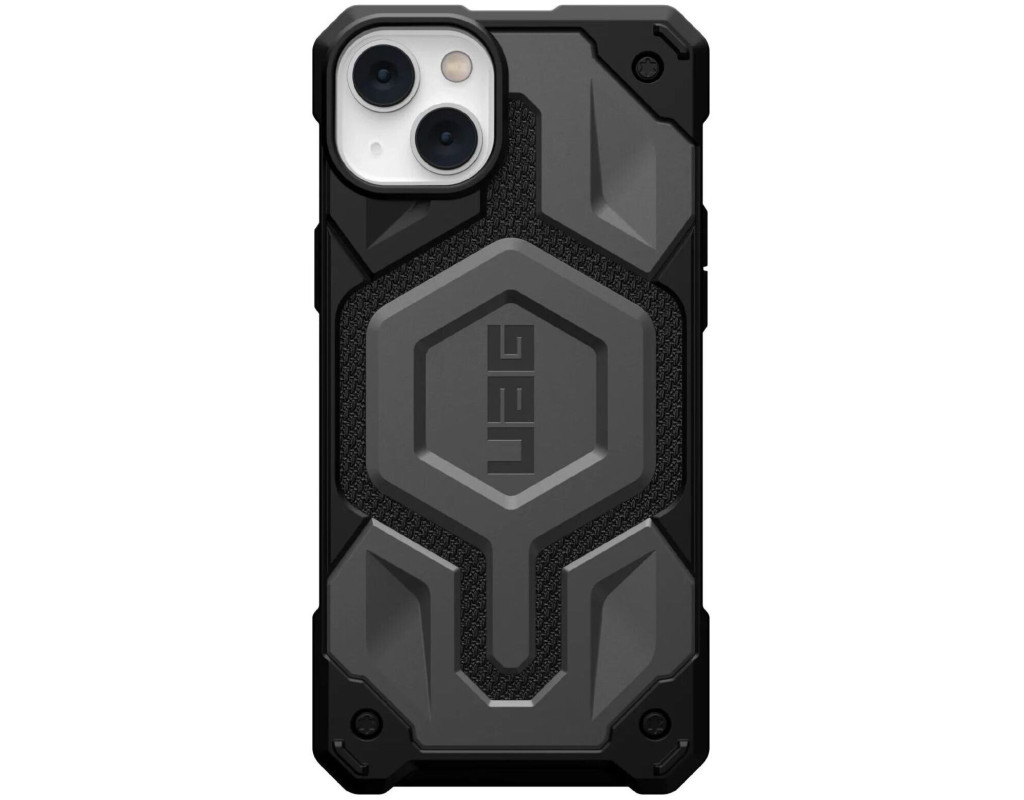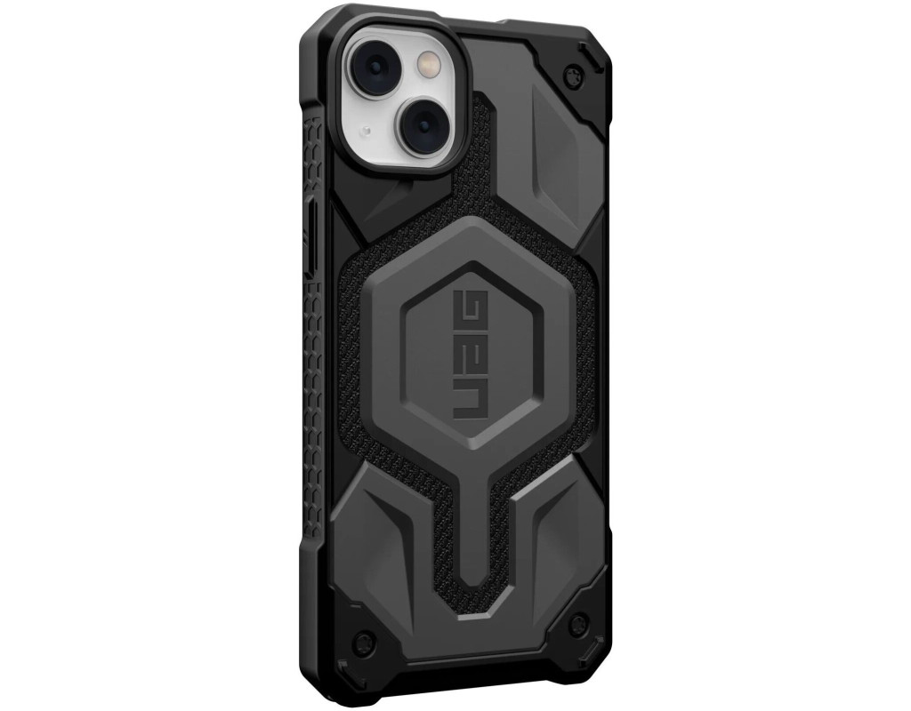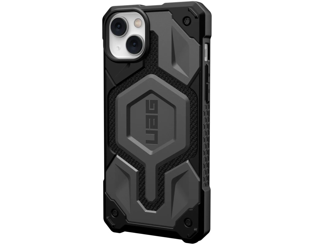| Чохол Monarch Pro MagSafe Kevlar Series – це найміцніший із чохлів серії Monarch Pro і один з найнадійніших чохлів, доступних на ринку. У його конструкції використовується багатошарове компонування, що включає високоякісний кевлар, жорсткі полікарбонатні вставки, металеві елементи і протиударний силіконовий бампер по периметру. Така комбінація з матеріалів різної жорсткості дозволяє пристрою витримувати навіть дуже жорсткі падіння (до 6 метрів), залишаючись при цьому неушкодженим. Рифлена фактура спинки та ребер не збирає на собі відбитки, а також покращує хват у руці. Для всіх роз’ємів та камери передбачені необхідні отвори, тоді як кнопки прикриваються м’якими пило- та вологозахисними дублікаторами. У надітому стані чохол трохи виступає над рівнем лицьової панелі та тильної камери, що дозволяє класти пристрій на будь-яку рівну поверхню, без небезпеки їх подряпати. Окремо слід зазначити наявність спеціальних магнітів, впаяних у спинку, які забезпечують сумісність із бездротовими зарядками різних виробників. |