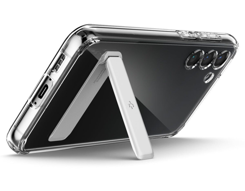 | Spigen Ultra Hybrid S - це високоякісний чохол-накладка з підвищеним рівнем захисту. Аксесуар виконаний в прозорому кольорі й гармонійно поєднується із зовнішнім виглядом пристрою. Задня панель виготовлена з міцного полікарбонату, доповненого по периметру еластичним силіконовим бампером - така комбінація матеріалів різної твердості істотно підвищує амортизаційні властивості виробу, дозволяючи добре справлятися навіть з жорсткими падіннями на підлогу. В конструкції передбачені необхідні отвори для портів і камери, а також м’які дублікатори для клавіш, що оберігають їх від потрапляння бруду і при цьому анітрохи не знижують зручності використання. Вдалим доповненням також є відкидна металева підставка, розташована на задній частині чохла - вона дозволяє встановлювати смартфон горизонтально на рівній поверхні для перегляду відео або читання з екрану. |