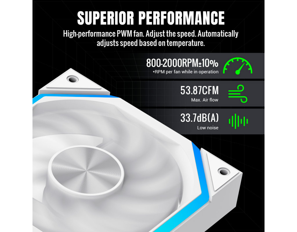 GameMax FN12A-N2-R — високоефективний вентилятор розміром 120 мм, який завдяки сучасним технологіям і продуманому дизайну забезпечує оптимальну циркуляцію повітря, зберігаючи при цьому низький рівень шуму. Завдяки 9-лопатевій конструкції вентилятор оптимізує потік повітря, а підтримка PWM-контролю дає змогу автоматично регулювати швидкість обертання в діапазоні 800-2000 об/хв залежно від температури системи, що забезпечує баланс між продуктивністю та енергоефективністю. Однією з ключових особливостей вентилятора є його гідравлічні підшипники, які гарантують тиху роботу навіть під час інтенсивних навантажень. Рівень шуму не перевищує 33,7 дБ, що дозволяє насолоджуватися комфортною тишею під час роботи чи гри. Вентилятор доступний у чорному кольорі з реверсивними лопатями, що додає гнучкості під час монтажу та дозволяє адаптувати його до різних конфігурацій корпусу. GameMax FN12A-N2-R підтримує синхронізацію ARGB-підсвічування з материнськими платами ASUS, MSI та іншими через 5V 3-контактний роз’єм. Це дозволяє створювати динамічні світлові ефекти, які ідеально доповнять зовнішній вигляд вашого ПК. |