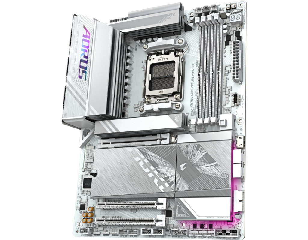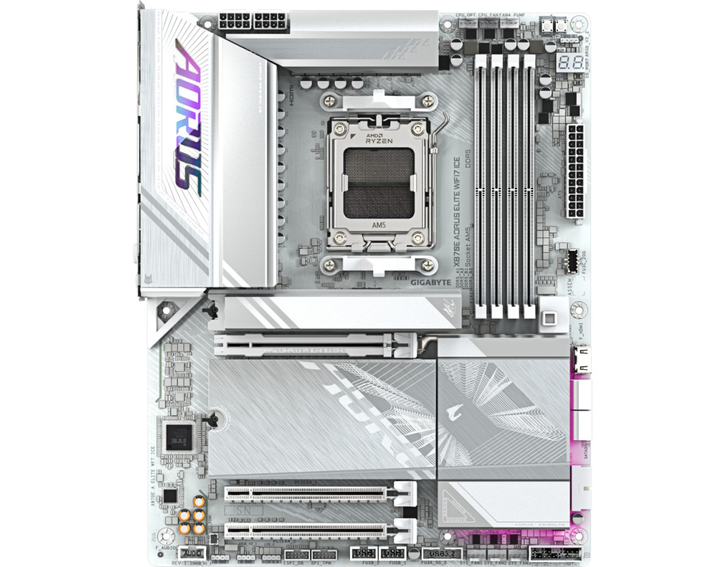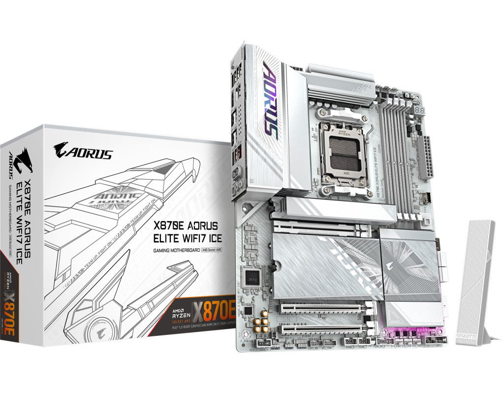 | Материнська плата GIGABYTE X870E AORUS ELITE WIFI7 ICE (X870E A ELITE WIFI7 ICE) створена для справжніх ентузіастів ігор, які прагнуть досягнути незабутньої продуктивності та вишуканого дизайну. Це ідеальне рішення для геймерів, які хочуть розкрити весь потенціал своїх систем, завдяки інноваційним технологіям і найсучаснішим функціям. Плата оснащена потужним чіпсетом AMD X870E, що забезпечує підтримку новітніх розробок в області комп'ютерних технологій. Вона інтегрує чотири роз'єми для оперативної пам'яті DDR5, підтримує двоканальний режим, пропонуючи неймовірні швидкості до 8200 MHz в режимі розгону. Це дозволяє використовувати максимум потужності під час ігор і роботи з важкими додатками. Завдяки підтримці до 256 ГБ оперативної пам'яті, ця плата задовольнить навіть найвимогливіших користувачів. Особливої уваги заслуговує система живлення з 16+2+2 фазами VRM, гарантуючи стабільність і довговічність навіть при екстремальних навантаженнях. Це відкриває нові горизонти для ентузіастів розгону, які прагнуть підняти свої компоненти на новий рівень продуктивності. Материнська плата виготовлена з використанням високоякісної друкованої плати серверного класу, що нараховує шість шарів. Це не тільки підвищує точність сигналу і узгодженість потужності, але й знижує електромагнітні перешкоди, створюючи ідеальне середовище для високопродуктивних комп'ютерних систем. Одна з головних переваг цієї плати - подвійний USB4 40 Гбіт/с, що підтримує DP-Alt для швидкої передачі даних і широкої сумісності з дисплеями ultra-HD. Це особливо цінно для творчих професіоналів, які працюють з великим обсягом даних і відео високої роздільної здатності. Плата підтримує новітній Realtek Wi-Fi 7 з технологією інтелектуальної антени, яка забезпечує максимальну пропускну здатність та мінімальні затримки, що ідеально підходить для VR-ігор. Стабільне підключення до бездротової периферії гарантує Bluetooth 5.4, який активно доповнює бездротові можливості плати. Звукова система, побудована на Realtek ALC1220, пропонує високу якість звуку з можливістю занурення у вир ігор чи музики. Якість звуку підтверджена використанням аудіофільських конденсаторів, що гарантує відмінний і насичений звук. Для власників великих графічних карт плата має три слоти PCI Express x16 з металевою бронею, що забезпечує довговічність і стійкість. Цей аспект критичний для підтримки важких і потужних графічних адаптерів. Наявність відеовиходу HDMI надає додаткові можливості підключення, розширюючи функціональність вашого ПК. На додачу до вже перелічених переваг, GIGABYTE X870E AORUS ELITE WIFI7 ICE обладнана розширеними портами підключення: чотири USB 3.2 Gen 1, два USB 3.2 Gen 2 Type-A і два USB4, дозволяючи з легкістю приєднувати різні периферійні пристрої. Крім того, підтримка RAID (0, 1, 5, 10) разом з чотирма SATA-III портами і чотирма слотами M.2 відкриває необмежені можливості для організації швидкісної системи зберігання даних. Завершальною вишуканістю є интегрована технологія RGB Fusion, що надає можливість програмувати освітлення світлодіодів, створюючи унікальні ефекти підсвічування для персоналізації вашої системи. GIGABYTE X870E AORUS ELITE WIFI7 ICE - це не просто материнська плата, це інноваційний центр вашої ігрової системи, що гарантує вражаючу продуктивність і стильний дизайн. Вона втілює в життя високу якість, надійність та функціональність, ставлячи нові стандарти для геймерських пла