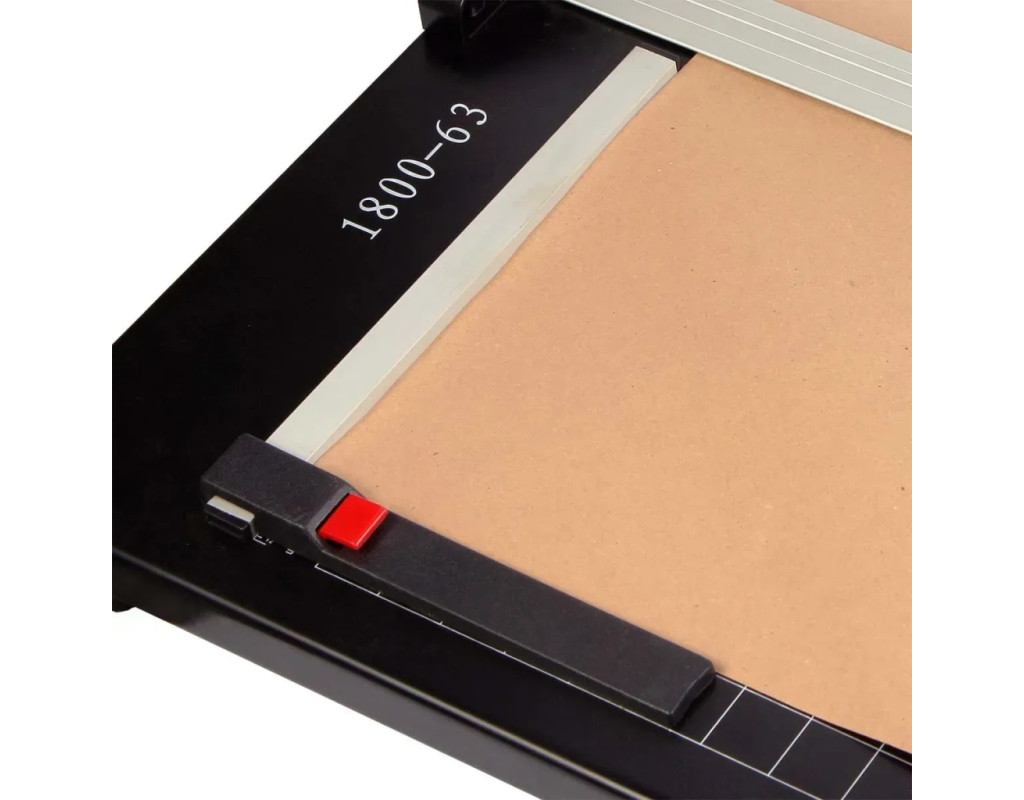 Різак для виконання середніх обсягів робіт по порізці паперу, картону. Довжина різу - 350 мм. Товщина різу - 2 мм. На столі нанесена розмітка стандартних форматів паперу. Лінійка-позиціонер допоможе точно виставити лінію різу. Прозора пластикова планка щільно притискає папір під час руху ножа, забезпечує автопритиск, точне позиціонування та можливість спостерігати лінію різу в момент розрізання матеріалів. Дисковий ніж цього різака має велику товщину та при різанні щільно притискається до контрлеза, що забезпечує процес самозаточування. Можливість різу в обох напрямках уздовж направляючої. Металева основа різака не деформується з часом, завжди тримає прямий та рівний різ. Можливість заміни ножа. |