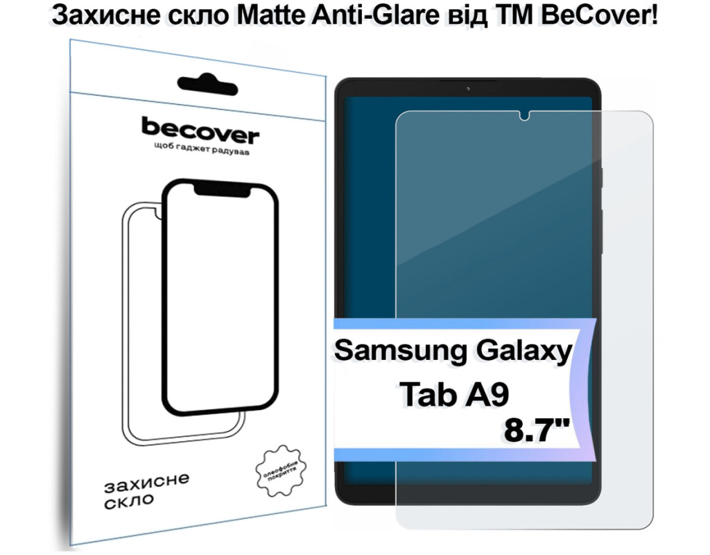 Призначення - для планшета, Вид покриття - матове, Сумісність з моделями - Samsung Galaxy Tab A9, Підходить для планшетів з діагоналлю - 8.7", Кількість в упаковці - 1 шт