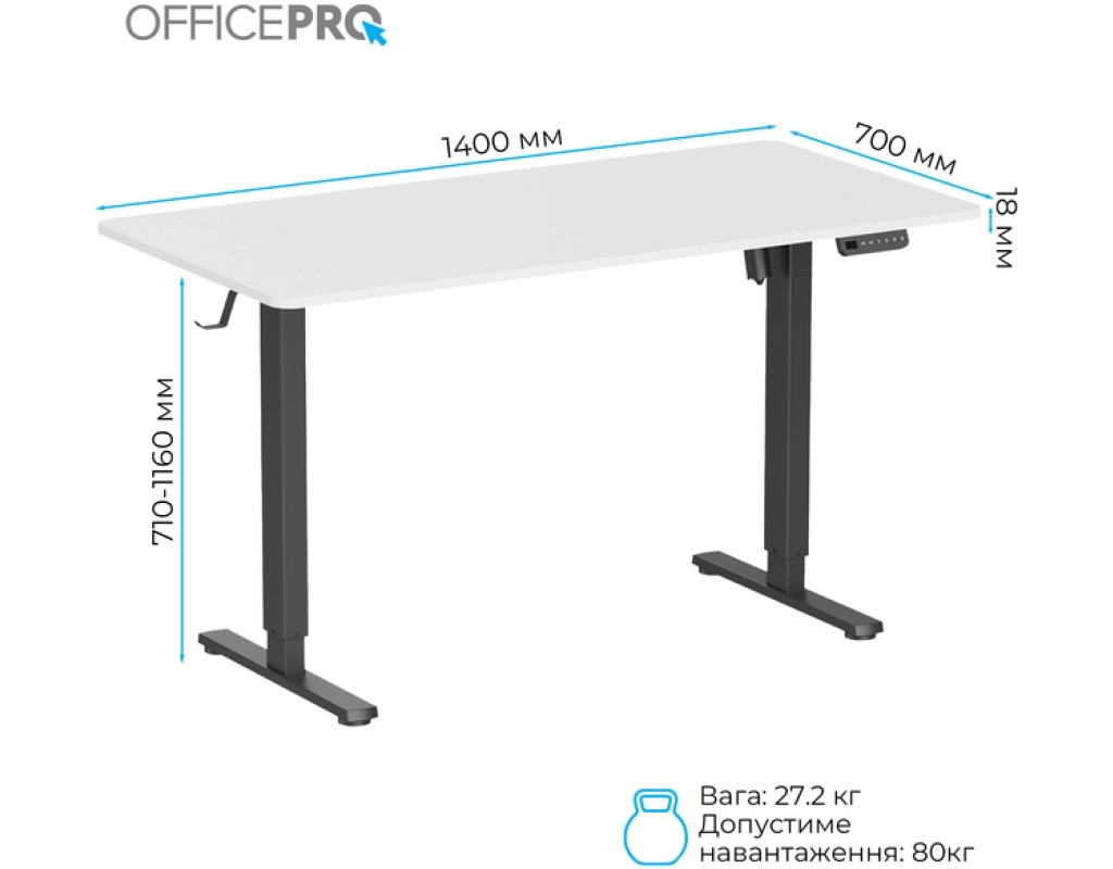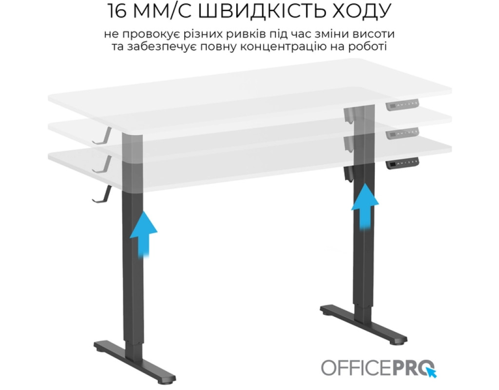 Стіл із електрорегулюванням висоти Officepro серії ODE1470 розроблений для бездоганної інтеграції в будь-який домашній інтер'єр або корпоративне середовище, пропонує ідеальне поєднання функціональності, довговічності та доступності. Завдяки потужному двигуну стіл забезпечує плавне, тихе та надійне регулювання висоти одним натисканням кнопки.