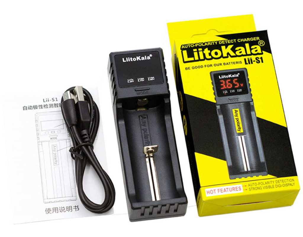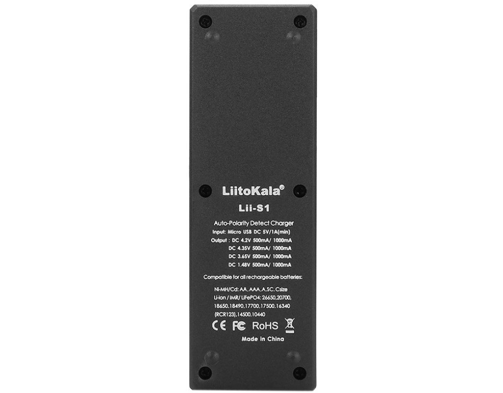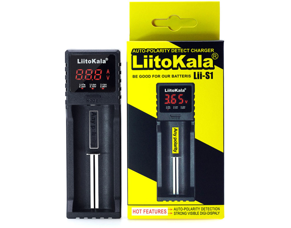 | Зарядний пристрій LiitoKala Lii-S1, 1x(Lion/LiFePO4/NiMH/NiCd), 1A, Auto Polarity, Display |