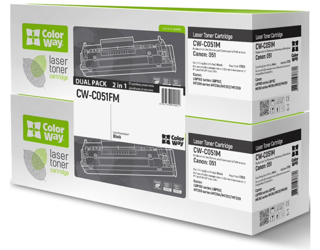 Картридж ColorWay CANON 051 LBP162/MF269/MF267/MF264 DUAL PACK 2x1,7K (CW-C051FM)