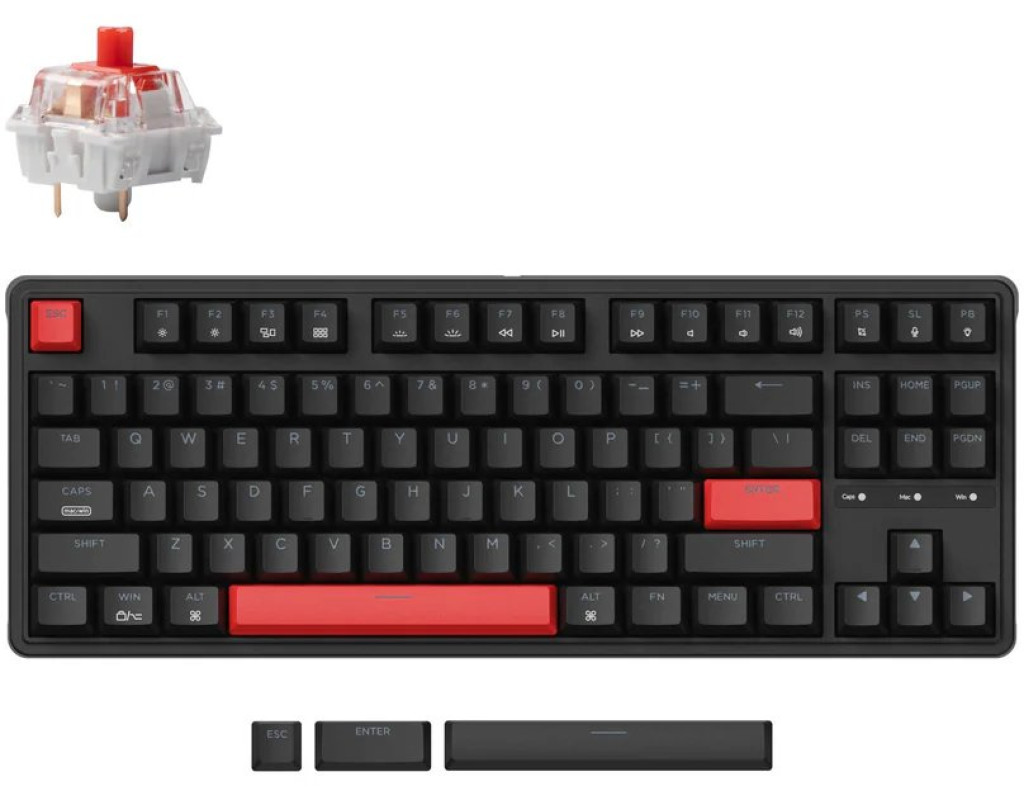 | Механічна клавіатура Keychron C3 Pro (87 клавіш) з коричневими перемикачами Brown Switch і гарячою заміною перемикачів (Hot-swap) надає чудовий баланс між тактильною відповіддю і комфортом друку. RGB-підсвічування додає стиль та налаштовується за вашим смаком. Ідеальний варіант для професіоналів і геймерів, що потребують універсальності і зручності |