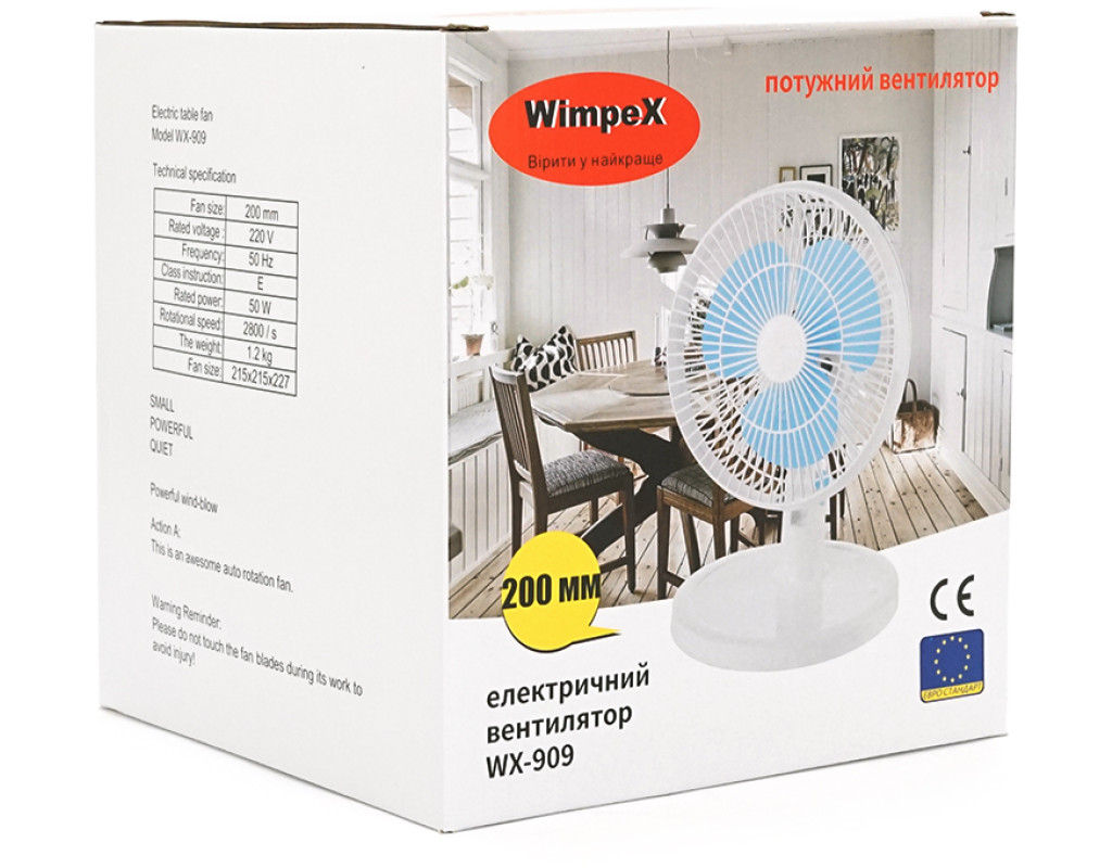 Вентилятор настільний WX-909, 220V, 50W, Box