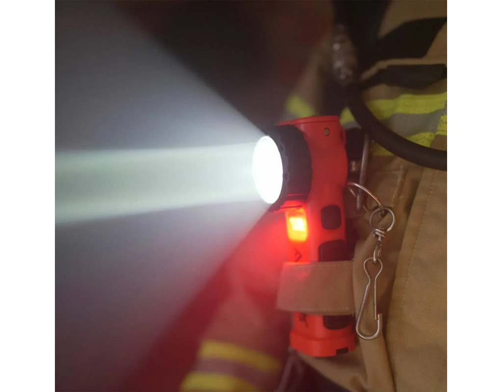 Mactronic M-Fire Guardian XR (240 Lm) Ex-ATEX — потужний професійний ліхтар для роботи в екстремальних умовах, з Г-подібною формою корпусу та червоним додатковим світлом — ідеальне для збереження нічного зору, роботи в команді та навігації у темряві без засліплення. Сертифікований за Ex-ATEX (I M1, II 1G), цей ліхтар безпечно функціонує у вибухонебезпечних середовищах, включно з зонами 0 і 1, а також у гірничій промисловості (категорія I Ma). Концентрований промінь потужністю 240 люменів пробиває дим і освітлює до 205 метрів — ідеально для рятувальних операцій, де потрібна точність. Дифузне додаткове світло чевоного кольору на 25 люменів підсвічує зону біля ніг або руки — зручно для документування чи роботи з інструментами. Обидва світлових джерела можна вмикати окремо або одночасно, а ергономічні перемикачі працюють навіть у товстих рукавицях. Живлення забезпечує літій-іонний акумулятор 2600 мА·г, що заряджається через зарядну базу (в комплекті) від 100 - 230В або 12В (автомобільна резетка). Автономність — до 224 годин в економному режимі, до 6 годин на повній потужності. Індикатор заряду на корпусі завжди під рукою, навіть якщо ліхтар закріплений на спорядженні. Корпус витривалий, пило- та водозахищений (IP67), витримує падіння з 1 метра. Завдяки компактному корпусу та продуманому кріпленню, ліхтар щільно прилягає до спорядження і не відхиляється вперед, що зменшує ризик випадкового зачеплення за перешкоди — його розроблено у співпраці з рятувальниками для максимального комфорту. Технічні характеристики: