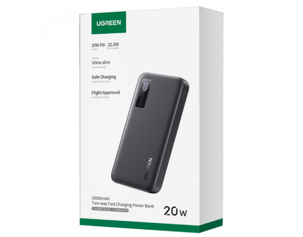 Універсальна мобільна батарея Ugreen 10000mAh 20W — потужність і зручність у кожному заряді Портативна батарея Ugreen 10000mAh 20W створена для тих, хто цінує швидкість, надійність і стиль у кожній деталі. Завдяки ємності 10000 мА·год, вона забезпечує тривале живлення для смартфонів, планшетів, навушників та інших USB-пристроїв, гарантуючи впевненість у будь-якій ситуації — вдома, у дорозі або під час подорожі. Сучасні технології швидкого зарядження Аксесуар оснащений двома вихідними портами — USB Type-A з підтримкою Quick Charge 3.0 та USB Type-C з підтримкою Power Delivery 3.0. Обидва порти забезпечують потужність до 20 Вт у сукупності, дозволяючи одночасно заряджати два пристрої без втрати ефективності. USB-A QC 3.0 видає до 20 Вт, а USB-C PD 3.0 — до 18 Вт. Це означає, що сучасні смартфони, зокрема iPhone та Samsung, отримають заряд максимально швидко і безпечно. Розумна економія часу Мобільна батарея заряджається через порт USB Type-C. Повне відновлення заряду триває всього близько трьох годин — результат, який оцінить кожен користувач, що не любить чекати. Цей функціонал робить повербанк ідеальним вибором для щоденного використання та екстрених ситуацій. Інформативний дисплей і преміальний дизайн На нижній частині корпусу розташовано LCD-дисплей, що чітко відображає залишковий рівень заряду. Завдяки цьому зручно стежити за станом батареї та планувати її використання. Стильний дизайн пристрою доповнює його практичність: лаконічні лінії, компактна форма та якісні матеріали створюють приємне враження та роблять аксесуар чудовим супутником на кожен день. Ugreen 10000mAh 20W — надійність у вашій кишені Ця універсальна мобільна батарея стане незамінним помічником для тих, хто веде активний спосіб життя і не готовий миритися з розрядженим гаджетом. Надійна електроніка, висока швидкість зарядки та елегантне виконання — усе, що потрібно для сучасного користувача. |