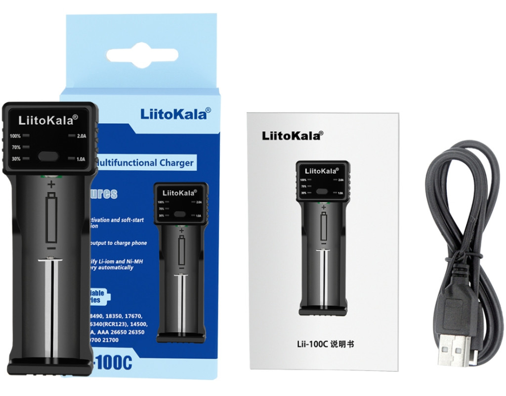 | Зарядний пристрій LiitoKala Lii-100C, 1x(Lion/NiMH/NiCd), 2A, Power Bank function |