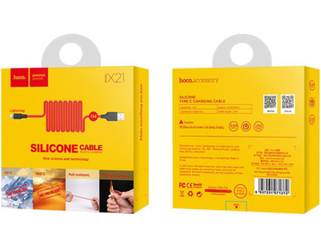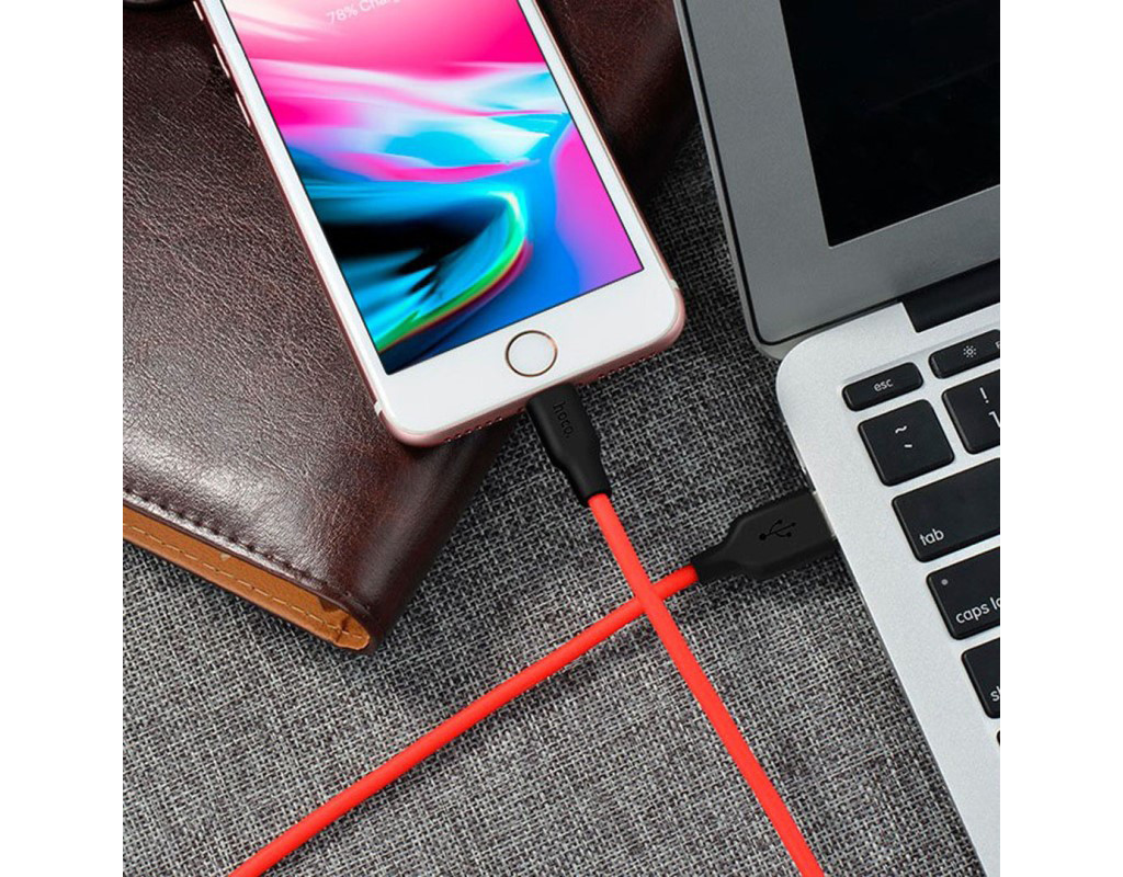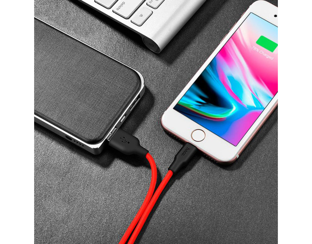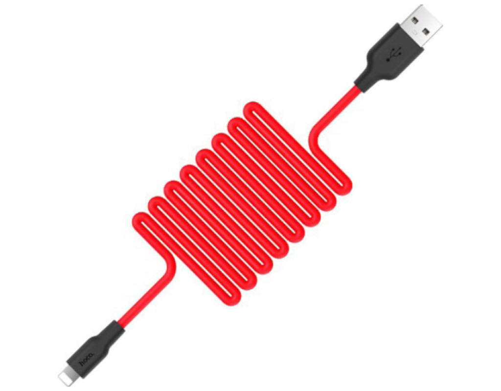 Дата кабель USB 2.0 AM to Lightning 1.0m 2A silicone X21 black+red HOCO (6957531071372)