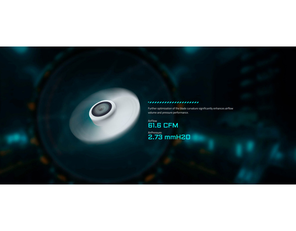 Тиха потужність Три вентилятори працюють у діапазоні 500–2200 об/хв, забезпечуючи повітряний потік до 61.61 фут³/хв при максимальному рівні шуму лише 35.8 дБ. Це означає, що навіть за високого навантаження система залишається тихою, не відволікаючи від гри чи роботи.