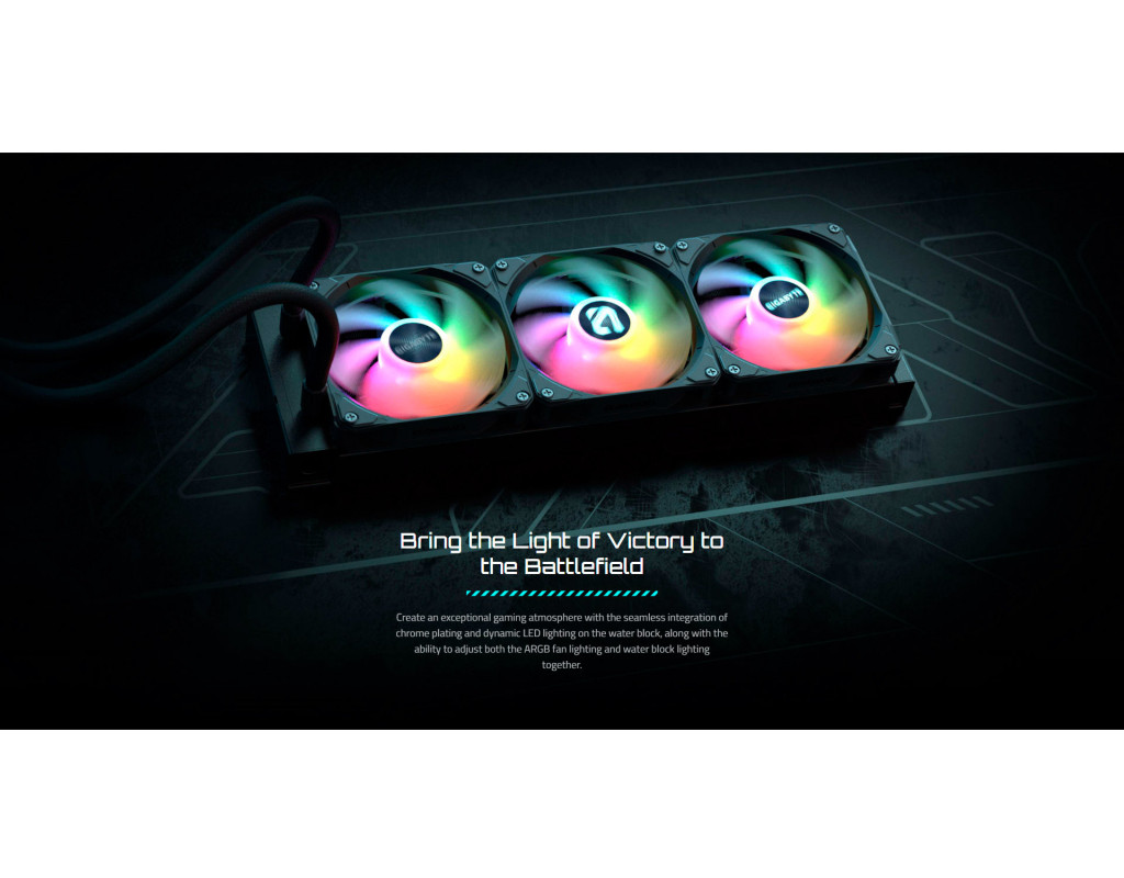 GIGABYTE Gaming 360 (GP-GME 360) Максимальна ефективність охолодження GIGABYTE Gaming 360 — це високопродуктивна рідинна система охолодження, створена для ентузіастів, геймерів і професіоналів, які очікують стабільної роботи навіть за екстремальних навантажень. Завдяки великому радіатору та трьом вентиляторам, вона дає змогу підтримувати оптимальну температуру сучасних багатоядерних процесорів.
