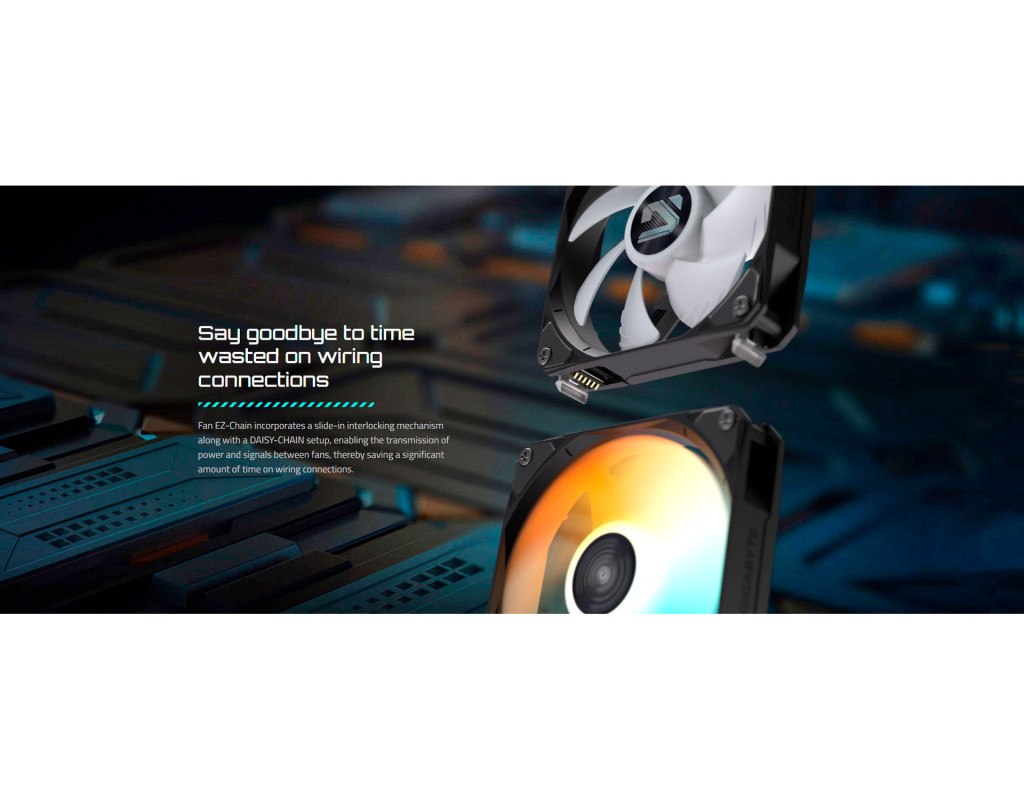 Зручність для складання Вентилятори з механізмом слайд-замикання та підтримкою DAISY-CHAIN значно спрощують монтаж і підключення. Це дає змогу швидко зібрати систему без зайвих дротів, зберігаючи акуратність і ефективність повітряного потоку. Індивідуальне підсвічування ARGB-підсвічування вентиляторів синхронізується з іншими компонентами системи, створюючи єдиний візуальний стиль. Магнітна верхня кришка з можливістю заміни світлової панелі дає змогу персоналізувати вигляд системи відповідно до власних уподобань.