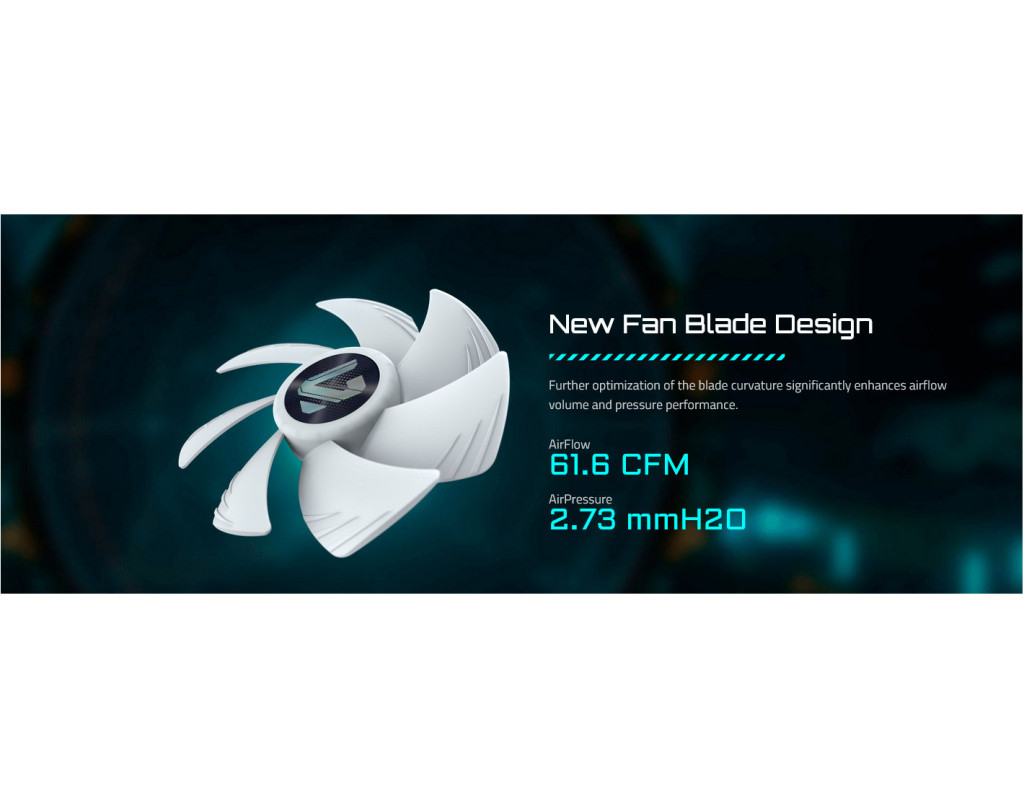 Тиха потужність Три вентилятори працюють у діапазоні 500–2200 об/хв, забезпечуючи повітряний потік до 61.61 фут³/хв при максимальному рівні шуму лише 35.8 дБ. Це означає, що навіть за високого навантаження система залишається тихою, не відволікаючи від гри чи роботи.