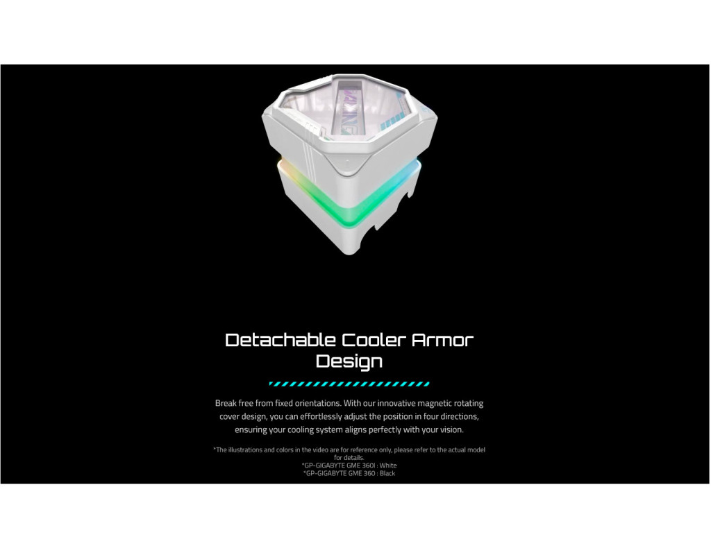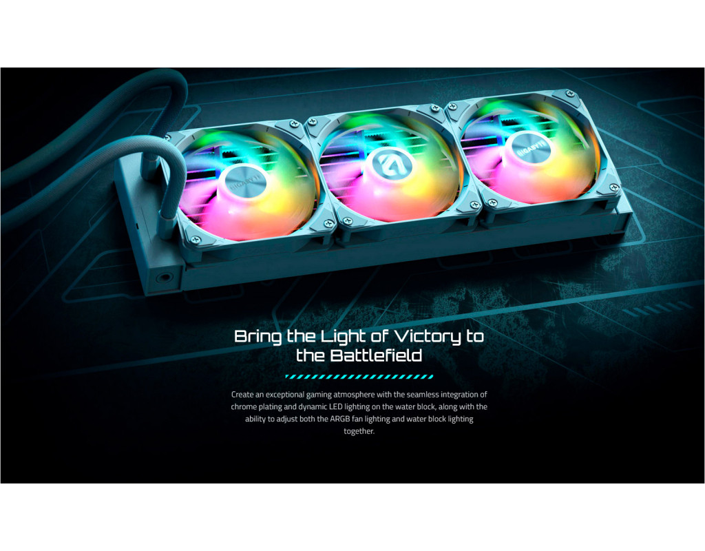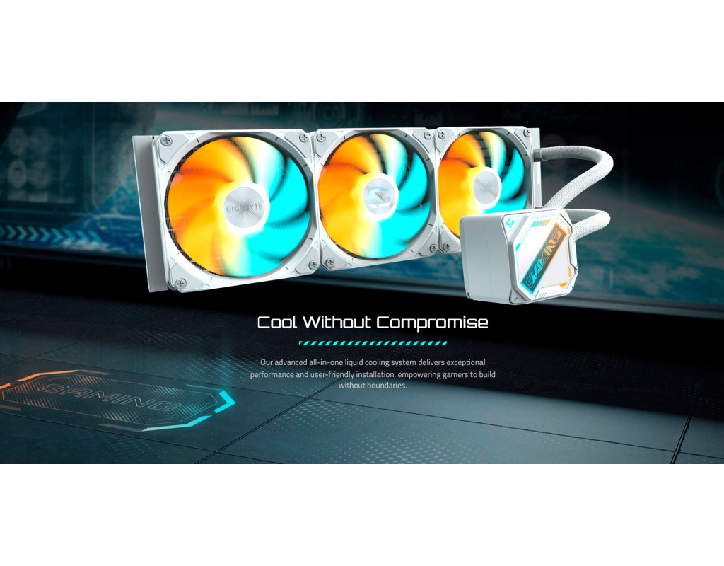 GIGABYTE Gaming 360 Максимальна ефективність охолодження GIGABYTE Gaming 360 — це високопродуктивна рідинна система охолодження, створена для ентузіастів, геймерів і професіоналів, які очікують стабільної роботи навіть за екстремальних навантажень. Завдяки великому радіатору та трьом вентиляторам, вона дає змогу підтримувати оптимальну температуру сучасних багатоядерних процесорів.