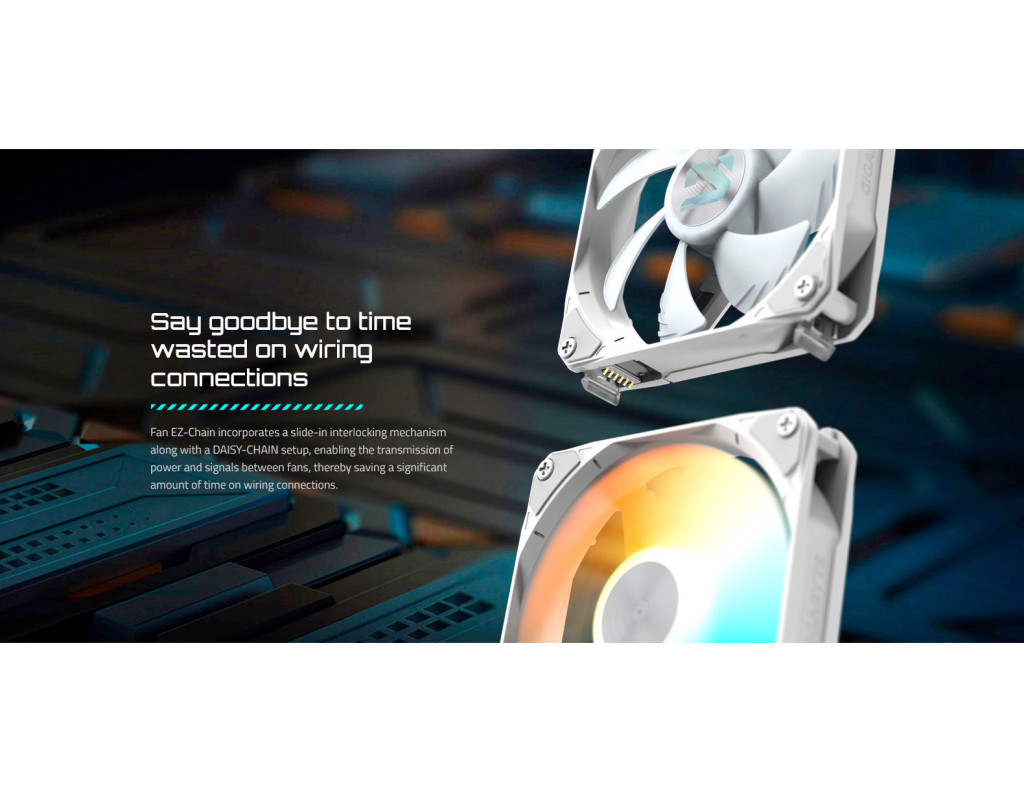 Зручність для складання Вентилятори з механізмом слайд-замикання та підтримкою DAISY-CHAIN значно спрощують монтаж і підключення. Це дає змогу швидко зібрати систему без зайвих дротів, зберігаючи акуратність і ефективність повітряного потоку. Індивідуальне підсвічування ARGB-підсвічування вентиляторів синхронізується з іншими компонентами системи, створюючи єдиний візуальний стиль. Магнітна верхня кришка з можливістю заміни світлової панелі дає змогу персоналізувати вигляд системи відповідно до власних уподобань.